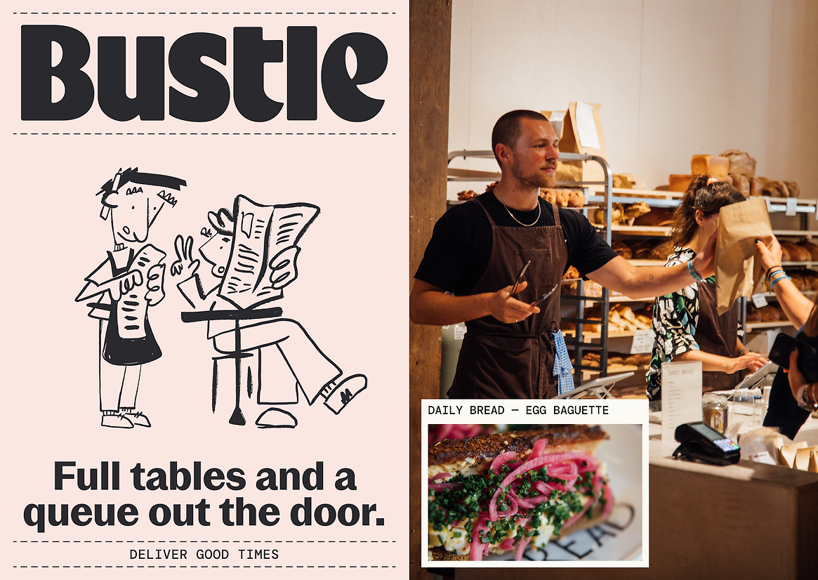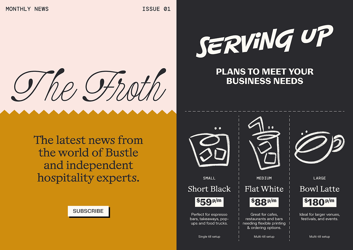 The goal for the brand was to become synonymous with Bustle’s hero customers, to look, feel and behave more like a hospo brand than a generic software product, and be known by all as the best way to run a hospo business.