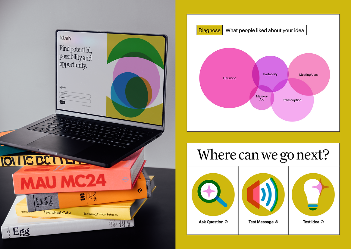 Ideally came to us a minimum viable product concept for customer research, without a brand or decided name. It was a research tool that could empower more people to bring customer voice into their concept development, projects and workflows.