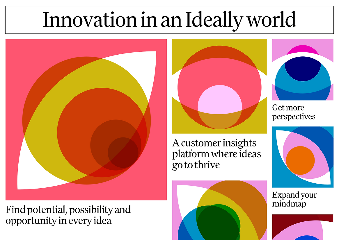 It was vital to have a rich and extensive graphic language, as Ideally is a platform and frame for other ideas and imagery. We needed to have an identity that allowed us to tell many stories, and turn up in social spaces and reports in distinctive and engaging ways.