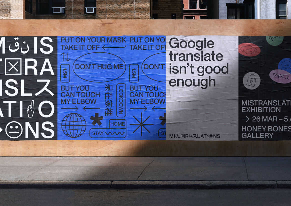 Using Melbourne Design Week’s brief ‘Design the world you want’ and the theme of ‘Care’, we set an open brief to engage linguistically diverse creatives to reimagine COVID-19 messaging in their own language. This grassroots approach actively engaged those impacted by messaging blunders to help create a solution and bring attention to the issue.Our vision was to amplify vulnerable voices with a public poster exhibition. To do this, we needed to excite creatives with a branded brief where the identity playfully engages with the concept of mistranslation.