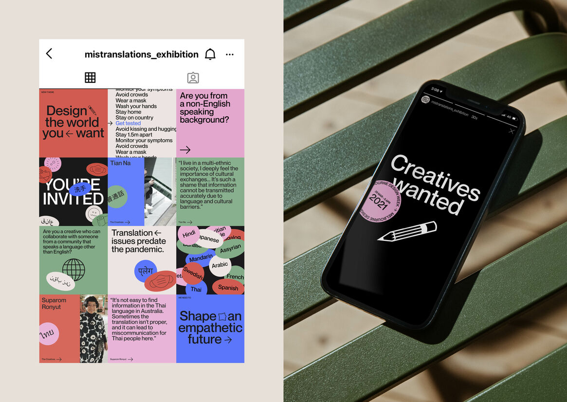 We created a microsite and Instagram account to house our brief and shared it with design studios, creatives and community organisations working with linguistically diverse creatives.