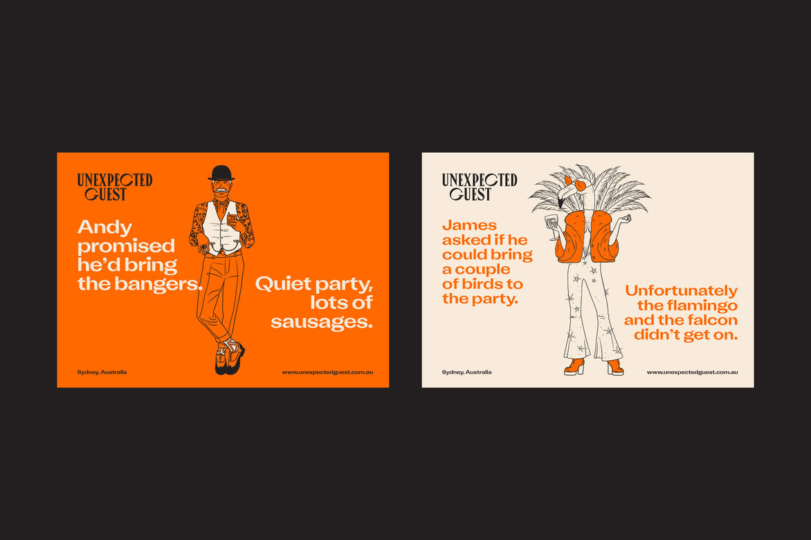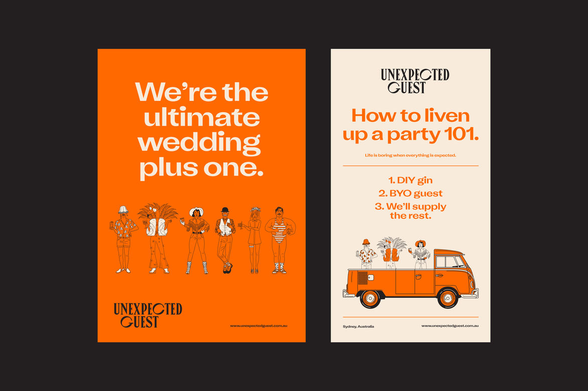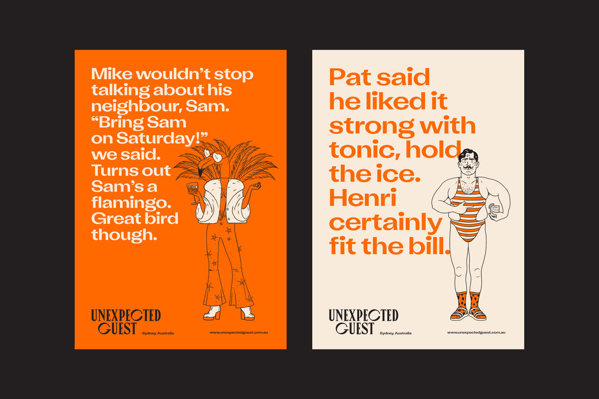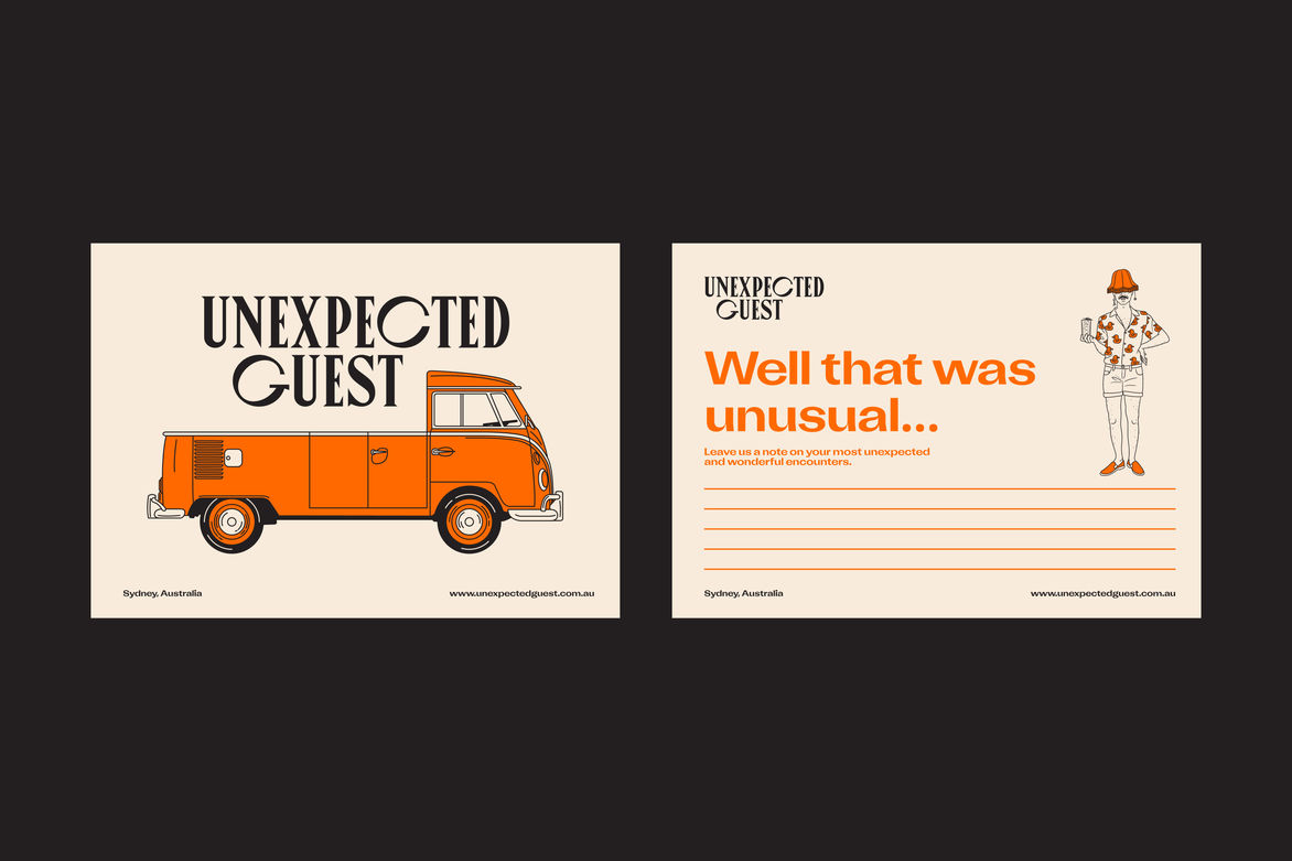 The first job was a new name. Drawing on the idea that the van is like that new person at a party who spices things up, we landed on Unexpected Guest. The playfulness of the name set the tone for the entire identity. A logo and typeface with unexpected quirks. A tone of voice rife with witty retorts and double entendres. An illustration suite – concepted by Re and illustrated by the brilliant Jean Michel Tixier – that personified the kinds of unexpected guests our clients hoped to encounter. The result is a brand built to stand out, never fit in.