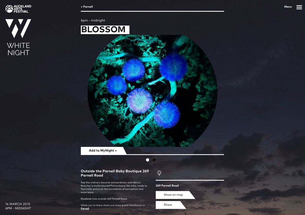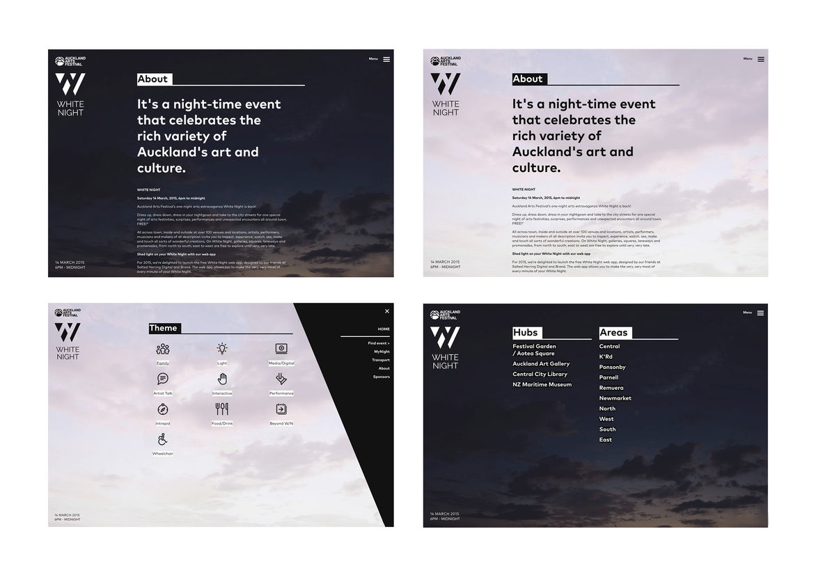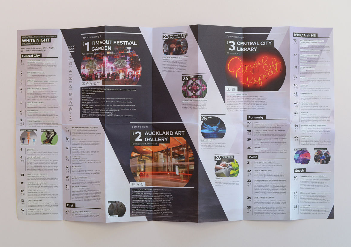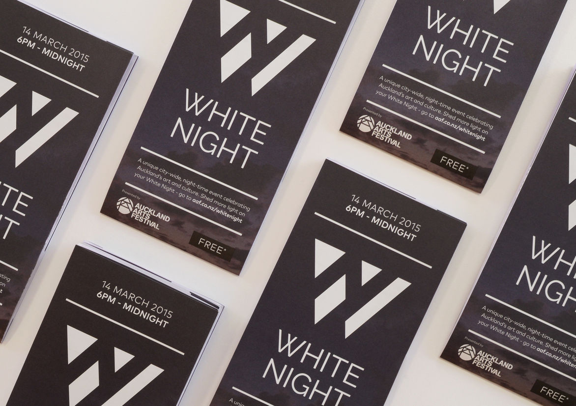 Graphic Business Communication Colour Award Graphics Design Communication Design Craft Editorial and Books Environmental Graphics Large Brand Identity Packaging Self Promotion Small Brand Identity Student & Academic Graphics Animation Digital Film Graphic Moving Image (archived 2025) Product Social Good Award Spatial Toitanga Value of Design Award User Experience Award (archived 2019) All categories Business Communication Colour Award Graphics Design Communication Design Craft Editorial and Books Environmental Graphics Large Brand Identity Packaging Self Promotion Small Brand Identity Student & Academic Graphics All years 2025 2024 2023 2022 2021 2020 2019 2018 2017 2016 2015 2014 2013 2012 2011 2010 Studio A-Z Salted Herring 14 White Night Brand 2015 Small Brand Identity Credits Pou Auaha / Creative Director Pep Zuijderwijk Ngā Kaimahi / Team Members Pep Zuijderwijk, Ryan Shields, Kate Handley Client Auckland Arts Festival