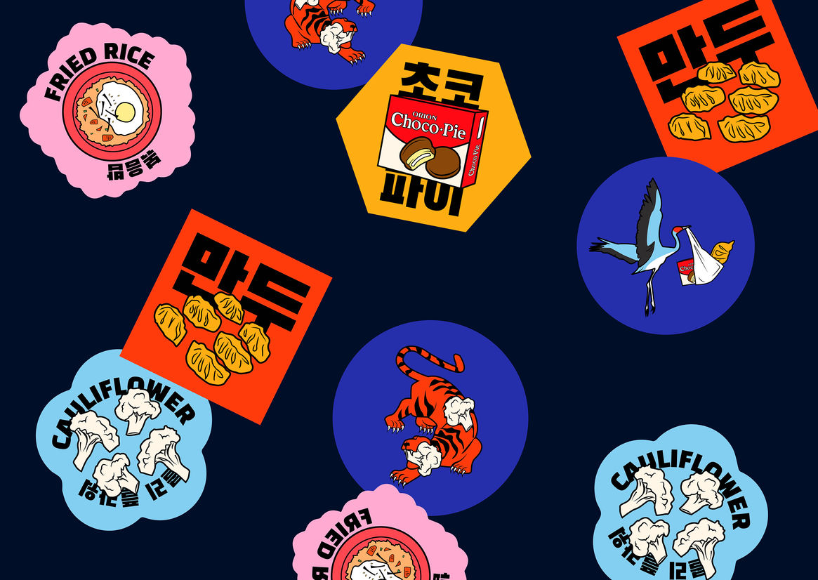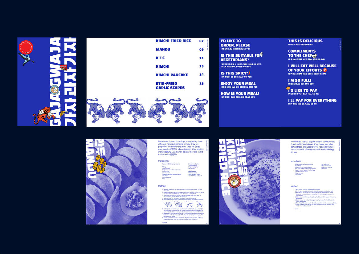 Our response was a modernised take on traditional Korean art, relying heavily on bold colours, surface decorations, and the stylistic influence on ‘Minhwa’ — a style of Korean folk art made popular in the 16th century. Gaja Gwaja draws on the traditional palettes of Minwha as well as incorporating simplified illustrations of the crane and the tiger (both of which are heavily used as symbolism in these paintings). This identity was applied as stickers and tape, evoking the surface decorations common in this traditional style. By applying a contemporary lens to Korean folklore, the identity for Gaja Gwaja situates itself between the Korean customary and the present time.