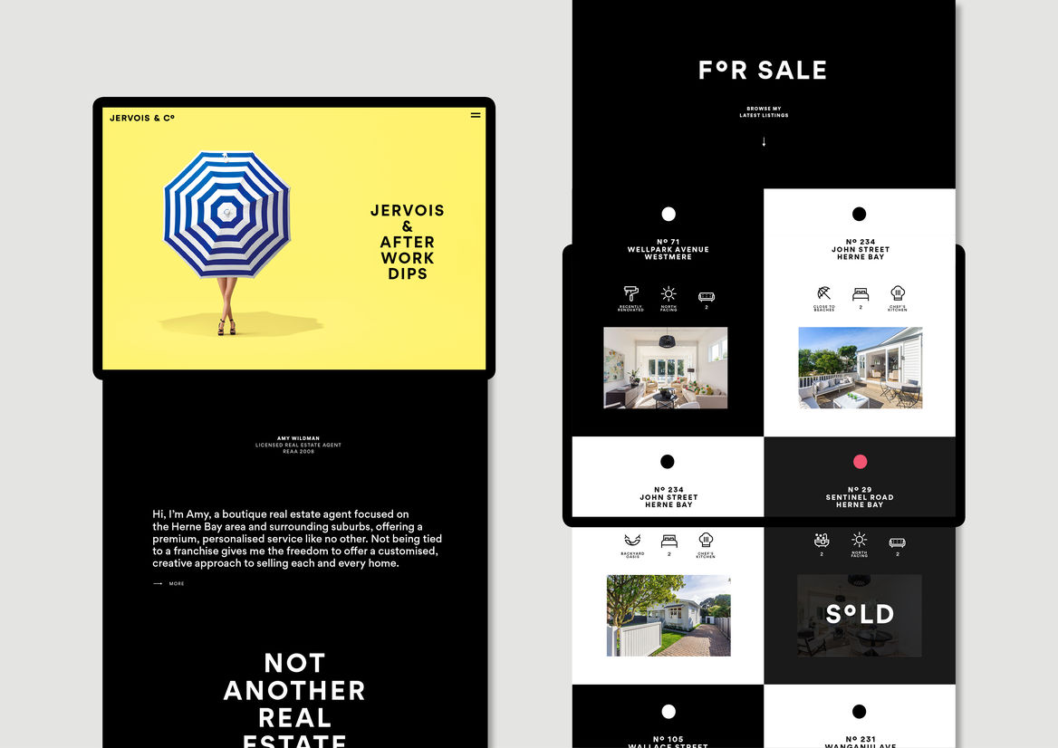 Graphic Business Communication Colour Award Graphics Design Communication Design Craft Editorial and Books Environmental Graphics Large Brand Identity Packaging Self Promotion Small Brand Identity Student & Academic Graphics Animation Digital Film Graphic Moving Image (archived 2025) Product Social Good Award Spatial Toitanga Value of Design Award User Experience Award (archived 2019) All categories Business Communication Colour Award Graphics Design Communication Design Craft Editorial and Books Environmental Graphics Large Brand Identity Packaging Self Promotion Small Brand Identity Student & Academic Graphics All years 2025 2024 2023 2022 2021 2020 2019 2018 2017 2016 2015 2014 2013 2012 2011 2010 Studio A-Z Seachange 83 Jervois & Co — Not another real estate agent 2018 Small Brand Identity Credits Pou Auaha / Creative Directors Tim Donaldson, Amanda Gaskin Kaitautoko / Contributors Toaki Okano, Dean Foster, Collective Force Client Jervois & Co Judge's comments: This certainly delivered on breaking the expected in this sector. Real Estate that was more sophisticated and more fashion. So right but also so different.
