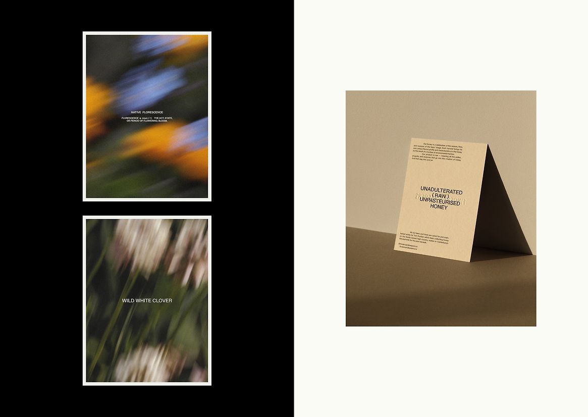To balance this colourful approach, we chose to keep the rest of the identity natural and restrained with muted colour tones for the labels, paired with simple typography and textural photography across printed materials, web, and social.