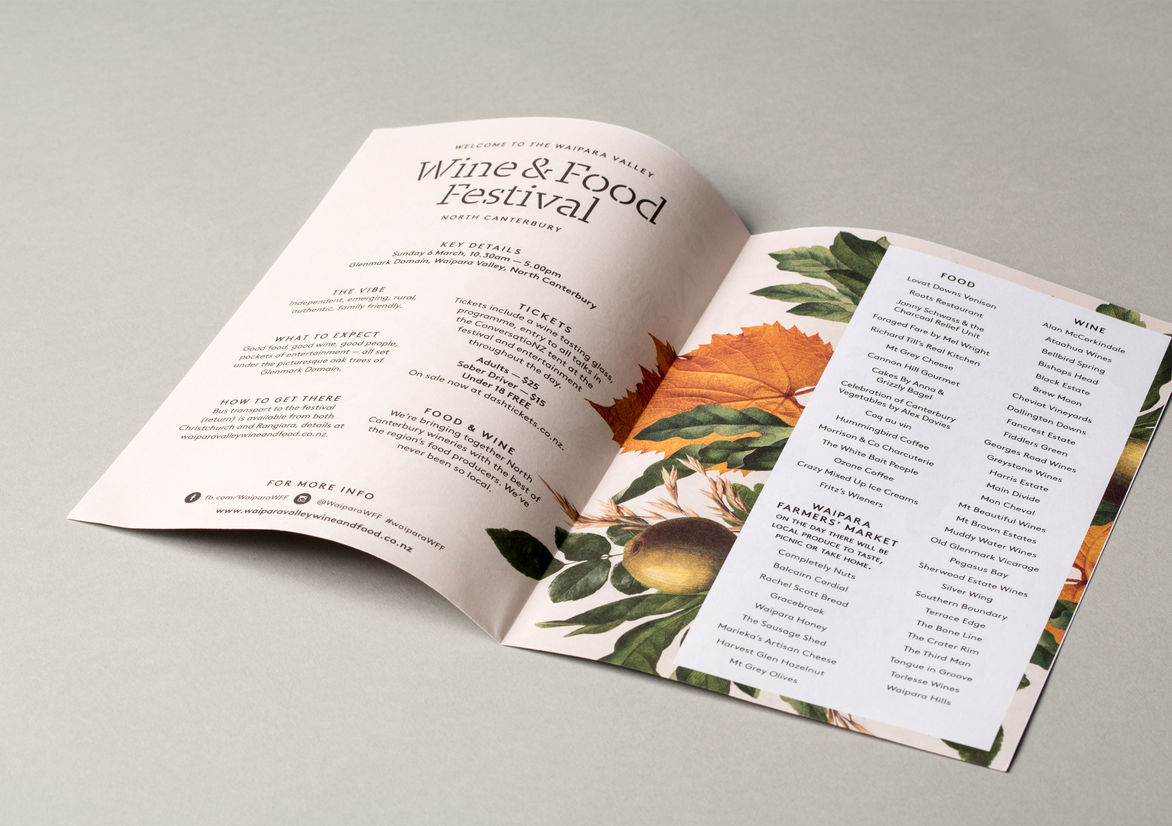 Graphic Business Communication Colour Award Graphics Design Communication Design Craft Editorial and Books Environmental Graphics Large Brand Identity Packaging Self Promotion Small Brand Identity Student & Academic Graphics Animation Digital Film Graphic Moving Image (archived 2025) Product Social Good Award Spatial Toitanga Value of Design Award User Experience Award (archived 2019) All categories Business Communication Colour Award Graphics Design Communication Design Craft Editorial and Books Environmental Graphics Large Brand Identity Packaging Self Promotion Small Brand Identity Student & Academic Graphics All years 2025 2024 2023 2022 2021 2020 2019 2018 2017 2016 2015 2014 2013 2012 2011 2010 Studio A-Z McCarthy 114 Waipara Wine & Food Festival Finalist 2016 Small Brand Identity Credits Pou Auaha / Creative Director Stephen McCarthy Ngā Kaimahi / Team Members Scott Bolton, Stephen McCarthy, Nikita Dudson, Nik House, Richard M. Burson Client Waipara Wine & Food Festival