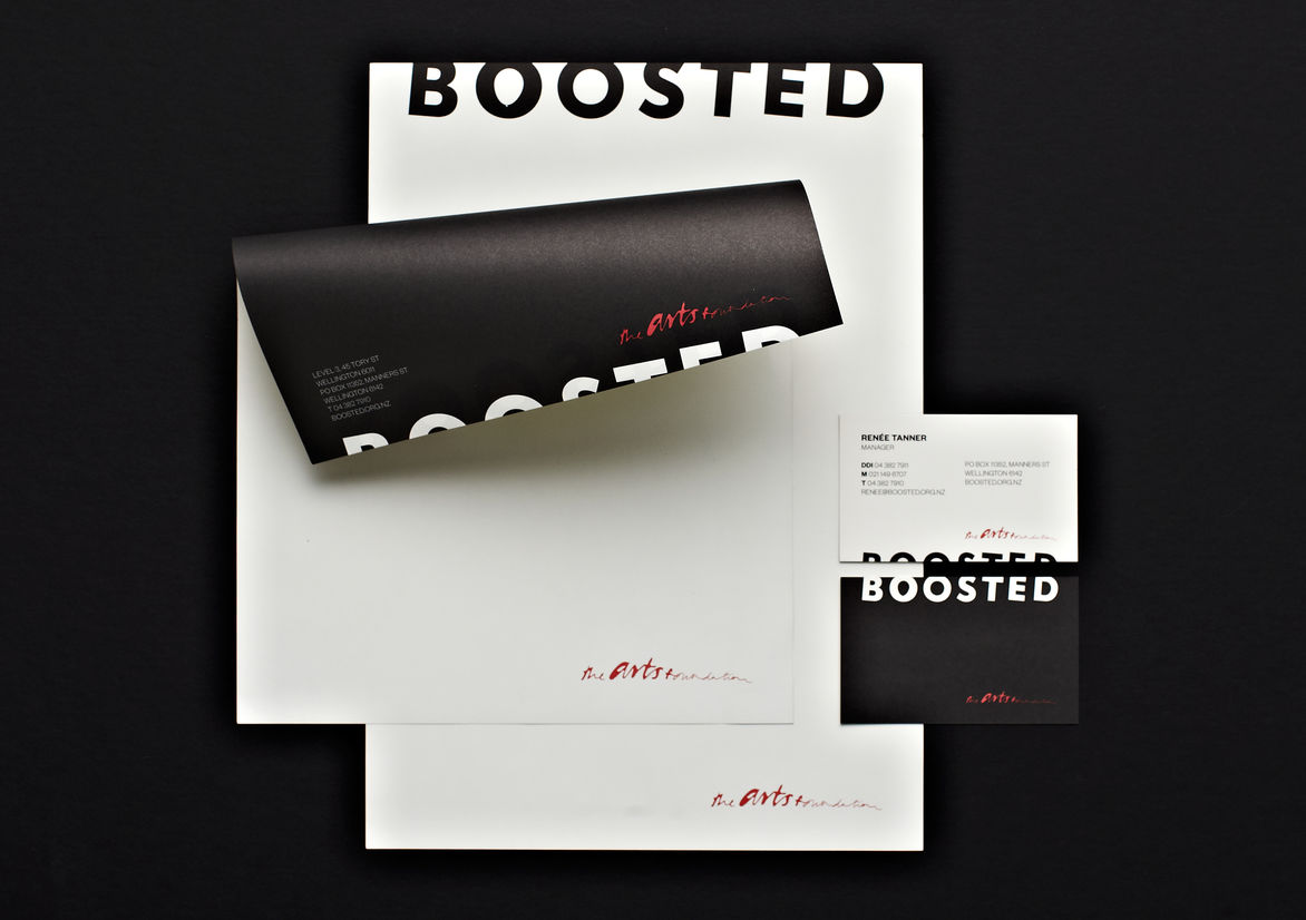 Graphic Business Communication Colour Award Graphics Design Communication Design Craft Editorial and Books Environmental Graphics Large Brand Identity Packaging Self Promotion Small Brand Identity Student & Academic Graphics Animation Digital Film Graphic Moving Image (archived 2025) Product Social Good Award Spatial Toitanga Value of Design Award User Experience Award (archived 2019) All categories Business Communication Colour Award Graphics Design Communication Design Craft Editorial and Books Environmental Graphics Large Brand Identity Packaging Self Promotion Small Brand Identity Student & Academic Graphics All years 2025 2024 2023 2022 2021 2020 2019 2018 2017 2016 2015 2014 2013 2012 2011 2010 Studio A-Z Strategy Creative 157 Boosted 2013 Small Brand Identity Credits Pou Auaha / Creative Director Gideon Keith Ringatoi Matua / Design Director - Ngā Kaimahi / Team Members Gideon Keith, Emile Holmewood Client The Arts Foundation