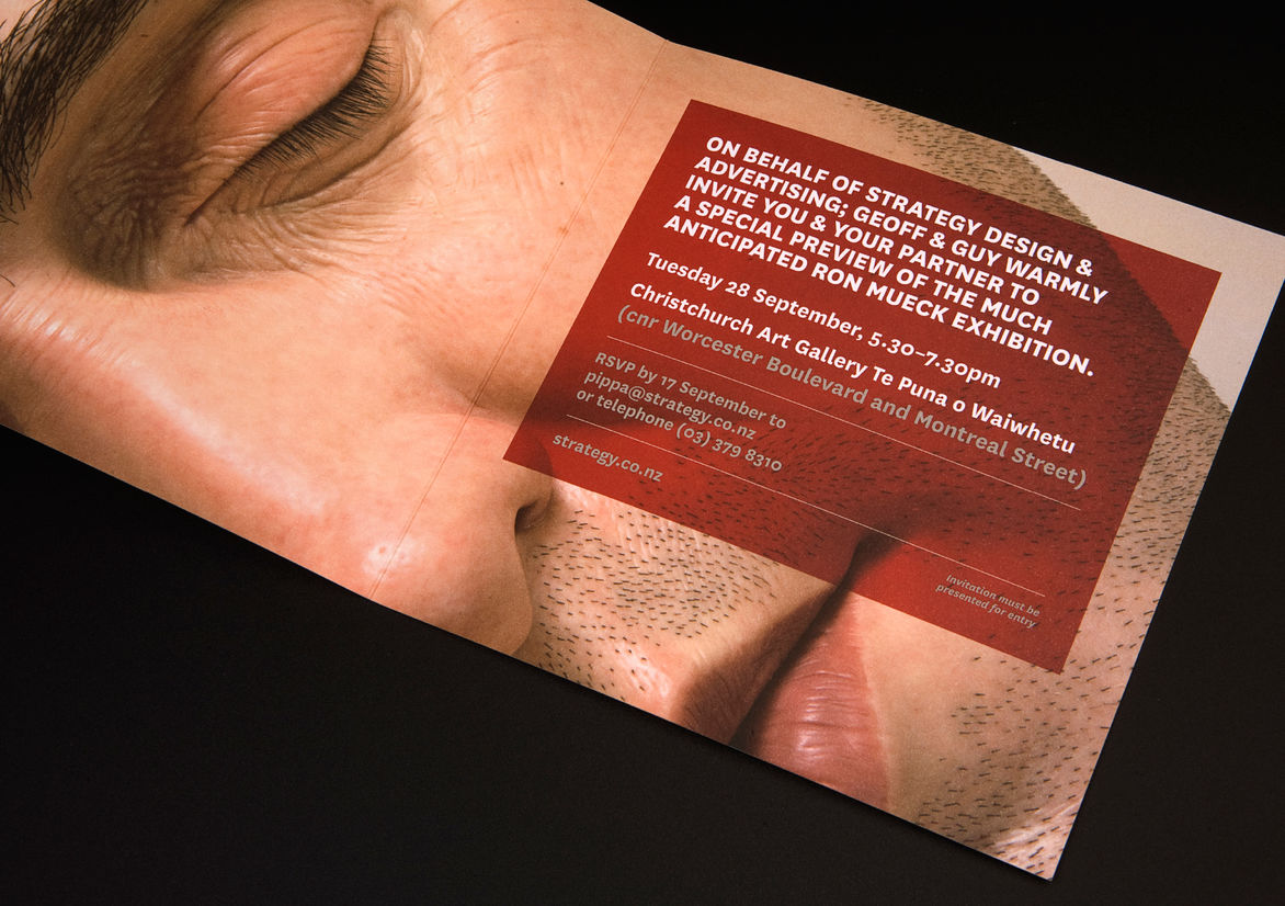 Graphic Business Communication Colour Award Graphics Design Communication Design Craft Editorial and Books Environmental Graphics Large Brand Identity Packaging Self Promotion Small Brand Identity Student & Academic Graphics Animation Digital Film Graphic Moving Image (archived 2025) Product Social Good Award Spatial Toitanga Value of Design Award User Experience Award (archived 2019) All categories Business Communication Colour Award Graphics Design Communication Design Craft Editorial and Books Environmental Graphics Large Brand Identity Packaging Self Promotion Small Brand Identity Student & Academic Graphics All years 2025 2024 2023 2022 2021 2020 2019 2018 2017 2016 2015 2014 2013 2012 2011 2010 Studio A-Z Strategy Creative 157 Ron Mueck Promotion 2011 Small Brand Identity Credits Ringatoi Matua / Design Director Guy Pask Ngā Kaimahi / Team Member Anita Liu Client Christchurch Art Gallery