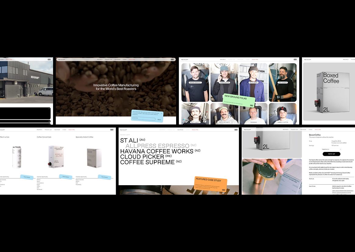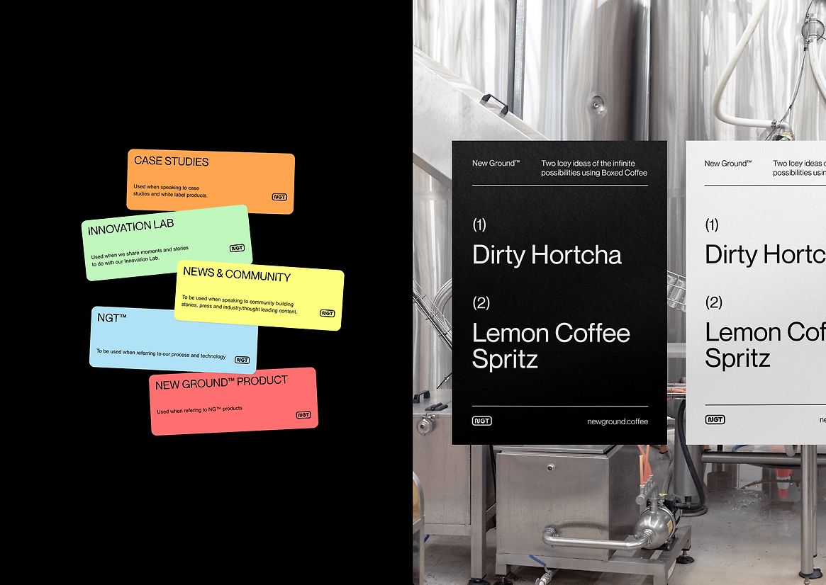 Collaborating with the world’s best coffee roasters, New Ground manufactures high-quality instant coffee, canned ready-to-drink coffee, and coffee concentrates, thereby elevating the standards of long-life specialty coffee. In a market saturated with exceptional consumer brands, New Ground needed a brand that would support its partner brands while highlighting its manufacturing edge. Their goal is to become the go-to platform for product innovation in the specialty coffee industry, driving forward new ideas and setting benchmarks for excellence.