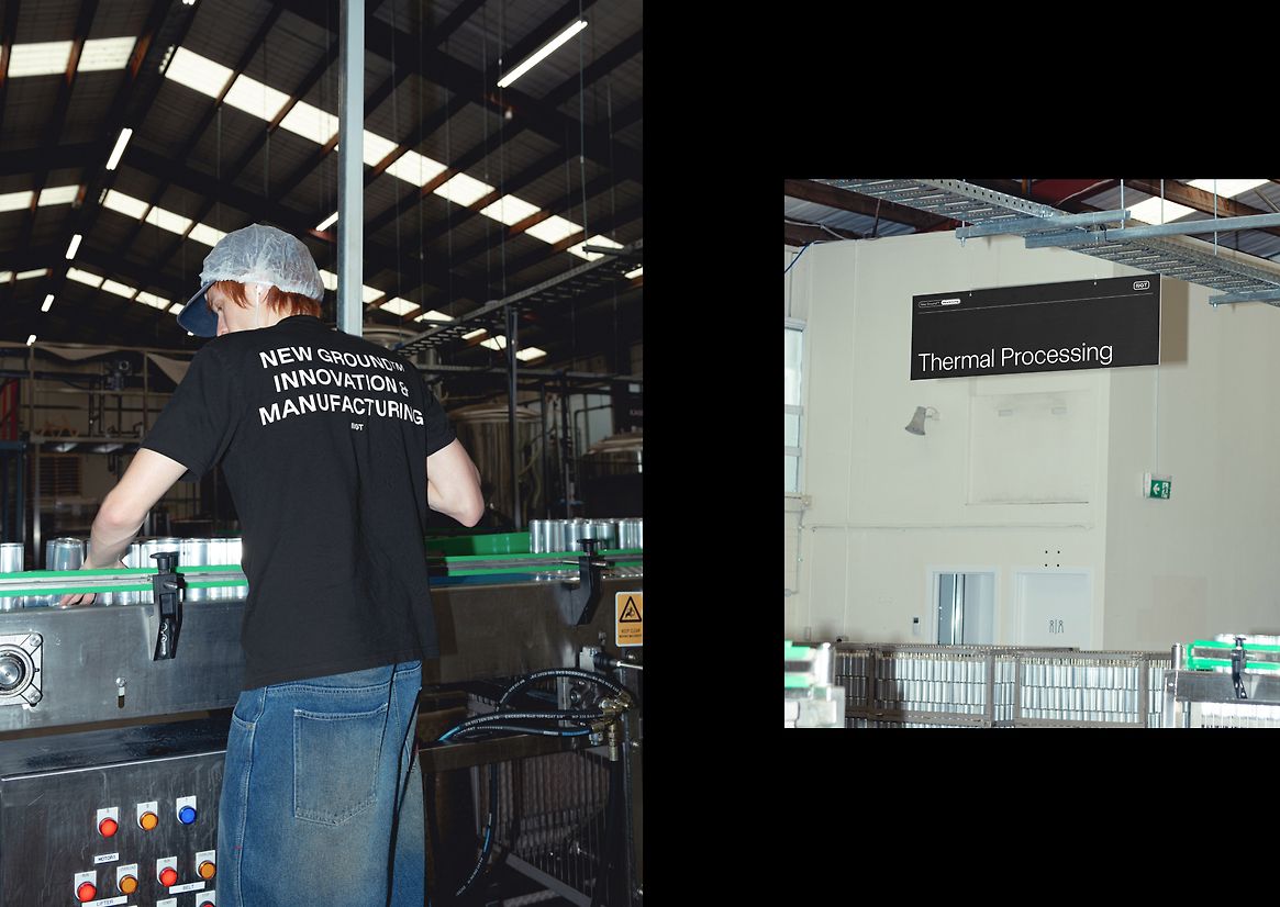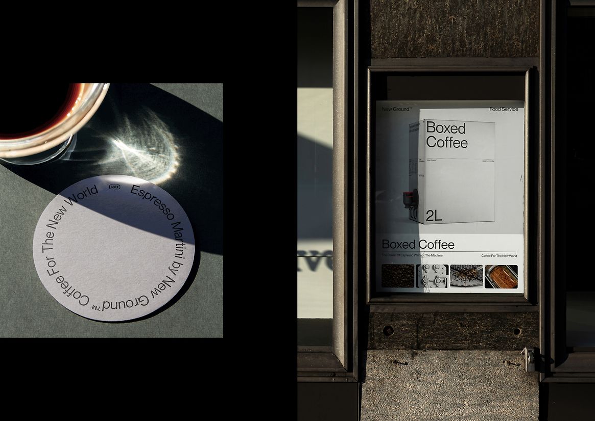 New Ground’s branding utilised elements commonly seen in manufacturing environments, such as temporary labels, minimalistic branding, and the raw aesthetic of industrial equipment. Materials like stainless steel and cardboard, prevalent in manufacturing, were integrated into the brand’s visual identity. This reinforced New Ground’s authenticity as a manufacturer and set it apart as a brand that embraces its role in the production process, emphasising a hands-on, genuine approach to manufacturing new-world coffee products.