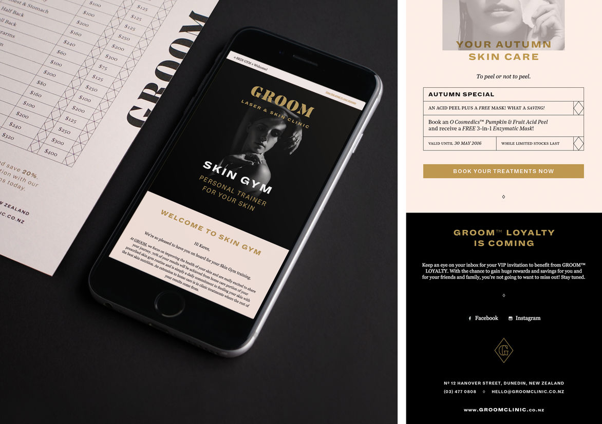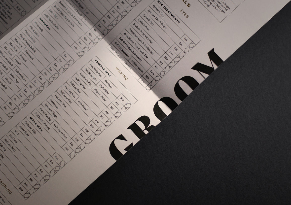 Graphic Business Communication Colour Award Graphics Design Communication Design Craft Editorial and Books Environmental Graphics Large Brand Identity Packaging Self Promotion Small Brand Identity Student & Academic Graphics Animation Digital Film Graphic Moving Image (archived 2025) Product Social Good Award Spatial Toitanga Value of Design Award User Experience Award (archived 2019) All categories Business Communication Colour Award Graphics Design Communication Design Craft Editorial and Books Environmental Graphics Large Brand Identity Packaging Self Promotion Small Brand Identity Student & Academic Graphics All years 2025 2024 2023 2022 2021 2020 2019 2018 2017 2016 2015 2014 2013 2012 2011 2010 Studio A-Z ThompsonCo 5 GROOM Laser & Skin Clinic Finalist 2016 Small Brand Identity Credits Pou Auaha / Creative Director Josh Thompson Ringatoi Matua / Design Director Josh Thompson Client GROOM Laser & Skin Clinic