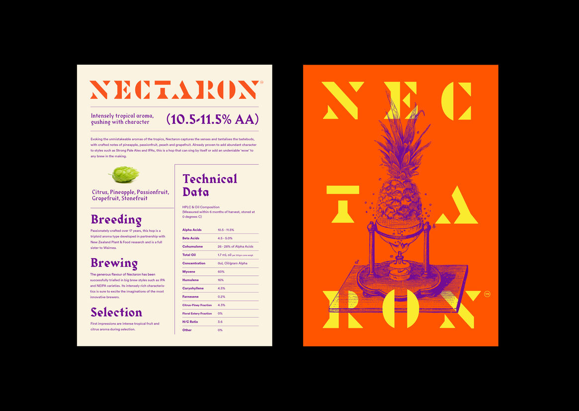 Crafted and refined over 17 years, Nectaron needed to make some noise. We were tasked with launching it to brewers with a strong new brand identity – not just to stand out, but to claim its rightful place as one of the most exciting hop cultivars in the world.