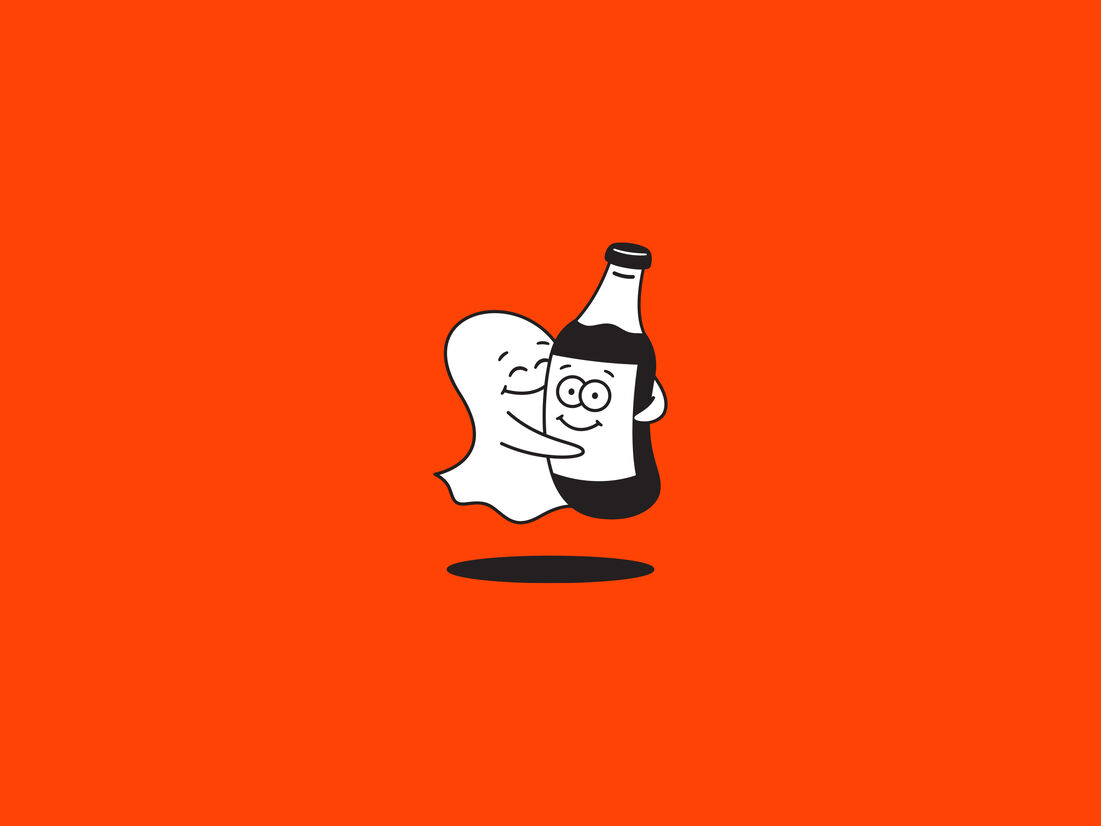 Taking inspiration from the cornershops of yesteryear, the typography and graphic elements have a sign-painted styling to them. Lettering is imperfect and 'janky', with a pair of loveable mascots used to communicate the 'best friends with premium spirits' message. The ghost (the spirit) and the bottle are best friends, with each touchpoint used to tell this story.