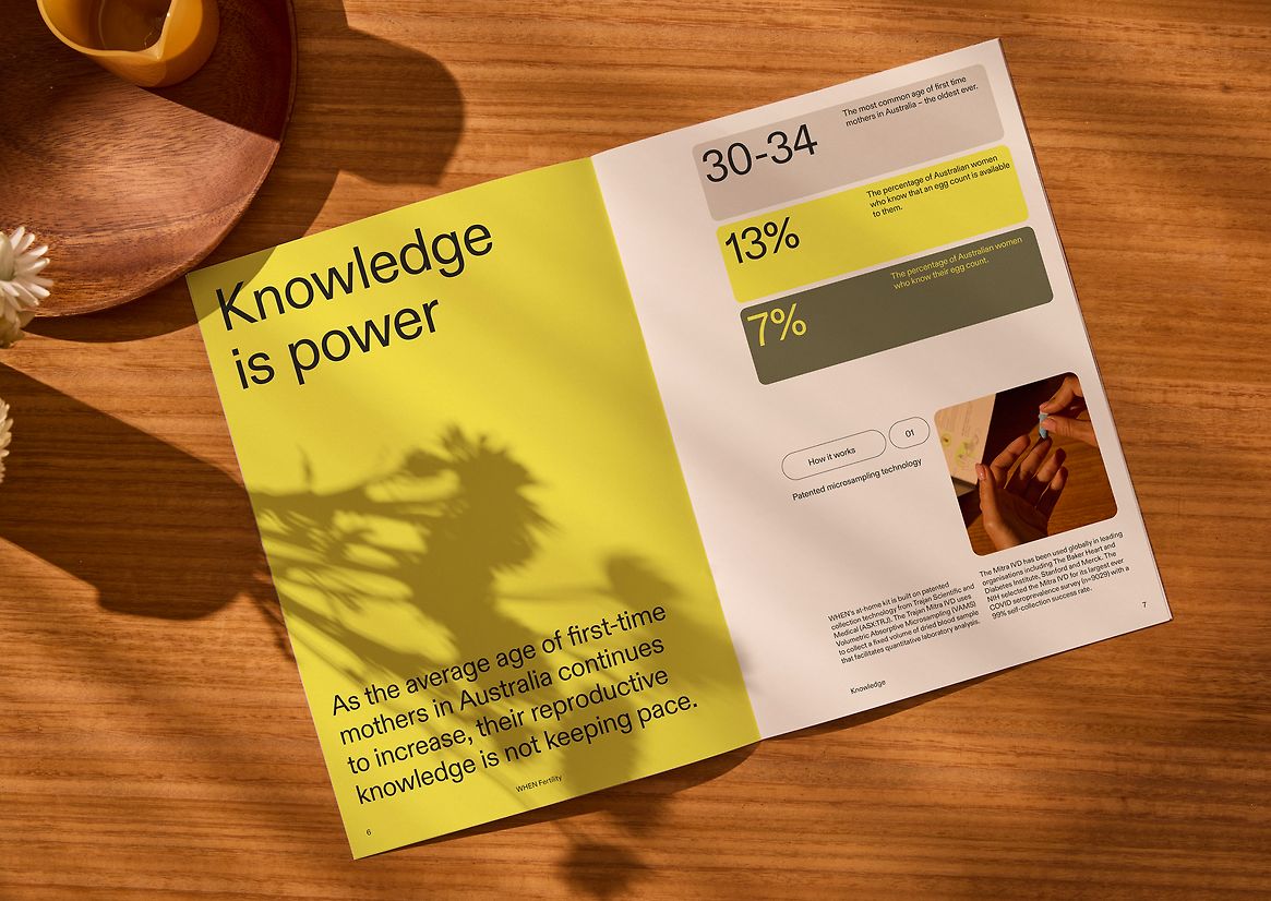 WHEN Fertility pioneers Australia’s first at-home egg count testing, blending medical credibility with empathetic storytelling to revolutionise fertility care. Our versatile brand identity scales across digital and retail, humanising the experience with intimate photography and custom icons. We've reduced stigma and empowered individuals with accessible, proactive solutions, setting new standards in fertility health.