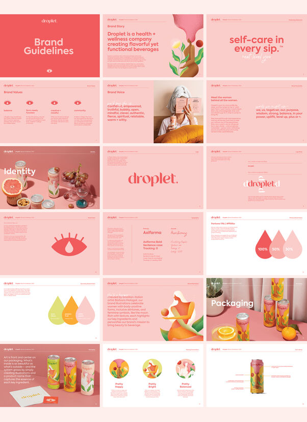 The brand identity created for Droplet is less about systems & more about flow, it’s a self-love & self-care movement. Droplet’s social media presence is characterised by vulnerability, openness, and transparency with its customers, as a way to differentiate from the soft drink industry’s reputation for being secretive and misleading in terms of marketing tactics and health concerns.
