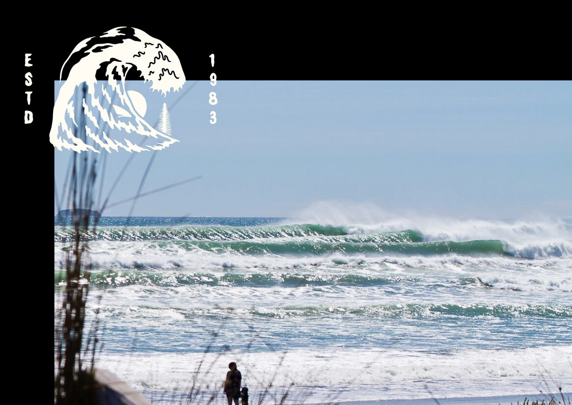 The identity needed to reflect the old and new Pāpāmoa surf community – a little edgy, a bit bogan, punk-inspired and featuring core local assets like the waves, pine trees and local bronze whale sharks.