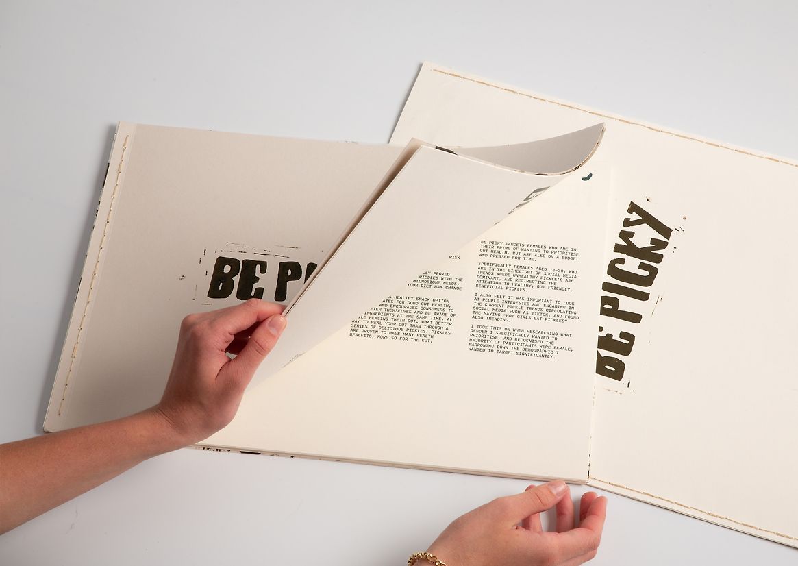 Be Picky is a healthy snack brand option that advocates for good gut health, by educating and encouraging consumers to make healthier food choices. Centred around the message of “being picky”, it is made up of a trio of different flavoured pickles to provide a healthy snack alternative, all while healing your gut. Each flavour comes equipped with a working attachment to inform and educate on the benefits of gut health, and the pivotal role pickles play in achieving it. Targeted at the young female demographic of Aotearoa, Be Picky strategically taps into the current trend of "hot girls eat pickles," aiming to empower young adults to enhance their health in a lively, advantageous, and educational manner.