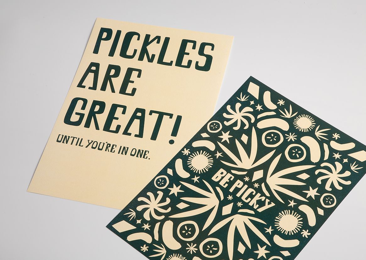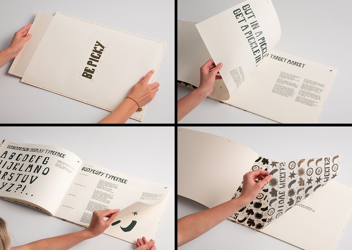 In order to create a working, fun and engaging brand identity it was designed a display font to actively display being picky. The organic nature of this font symbolises the importance of imperfection in our foods, and to stray away from artificial additives commonly found in our everyday diets. Leveraging this font, it was created a series of design collateral to back up the pickles and create an engaging brand to capture the target audience in a fun way.