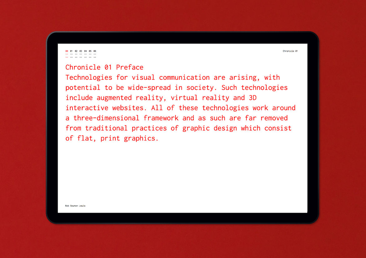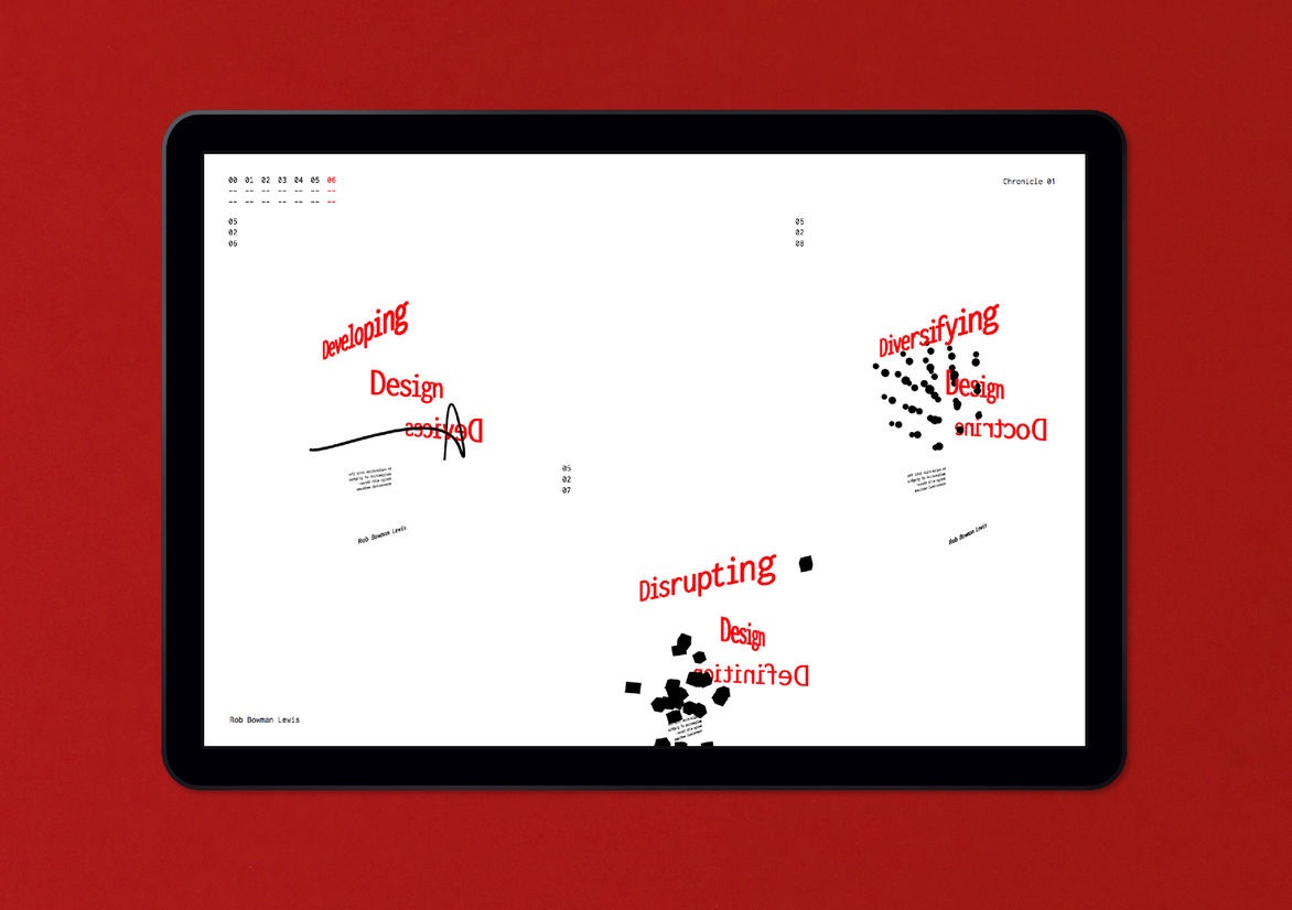 Graphic Business Communication Colour Award Graphics Design Communication Design Craft Editorial and Books Environmental Graphics Large Brand Identity Packaging Self Promotion Small Brand Identity Student & Academic Graphics Animation Digital Film Graphic Moving Image (archived 2025) Product Social Good Award Spatial Toitanga Value of Design Award User Experience Award (archived 2019) All categories Business Communication Colour Award Graphics Design Communication Design Craft Editorial and Books Environmental Graphics Large Brand Identity Packaging Self Promotion Small Brand Identity Student & Academic Graphics All years 2025 2024 2023 2022 2021 2020 2019 2018 2017 2016 2015 2014 2013 2012 2011 2010 Studio A-Z Rob Lewis Chronicle 01 2016 Student & Academic Graphics Credits Te Kapa Tauira / Student Team Rob Lewis Kaiako / Tutor Sheahan Huri School Auckland University of Technology