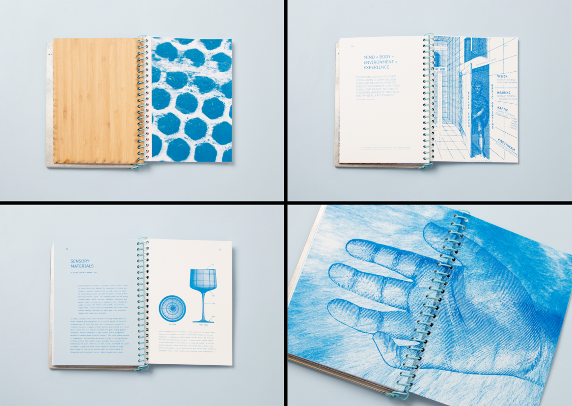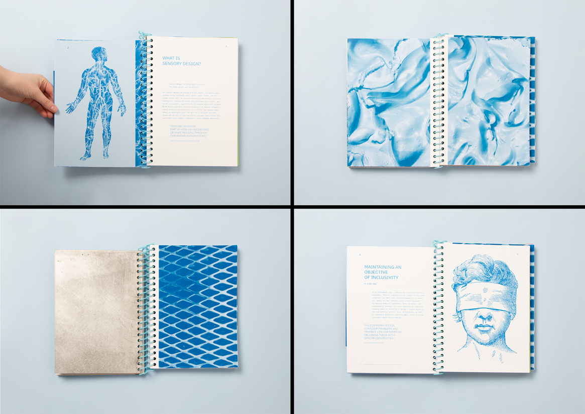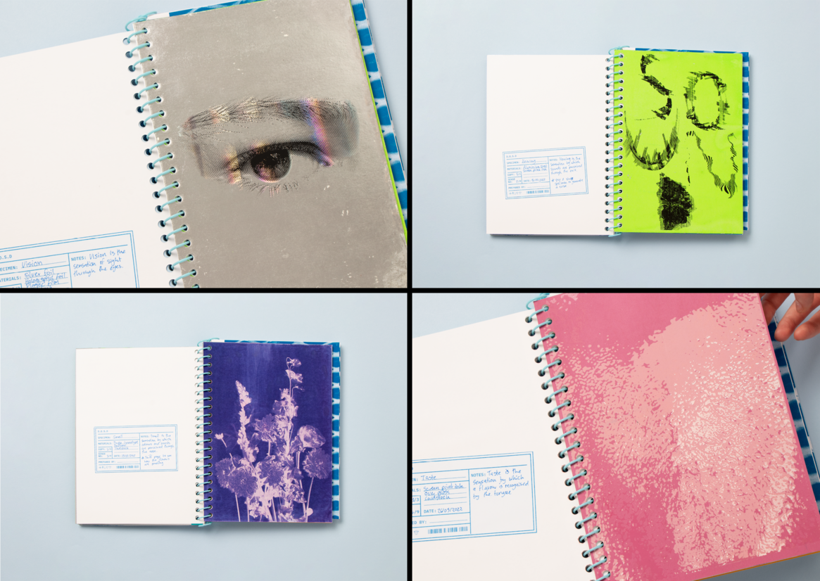 The project highlights these different printing methods and materials, explaining how their sensory perception of them can significantly impact how a design object is perceived, and most importantly, remembered. It welcomes the reader to be inquisitive, to touch, feel and smell the publication and not just interact with this publication visually.