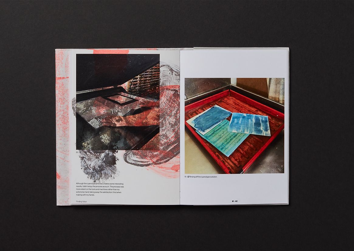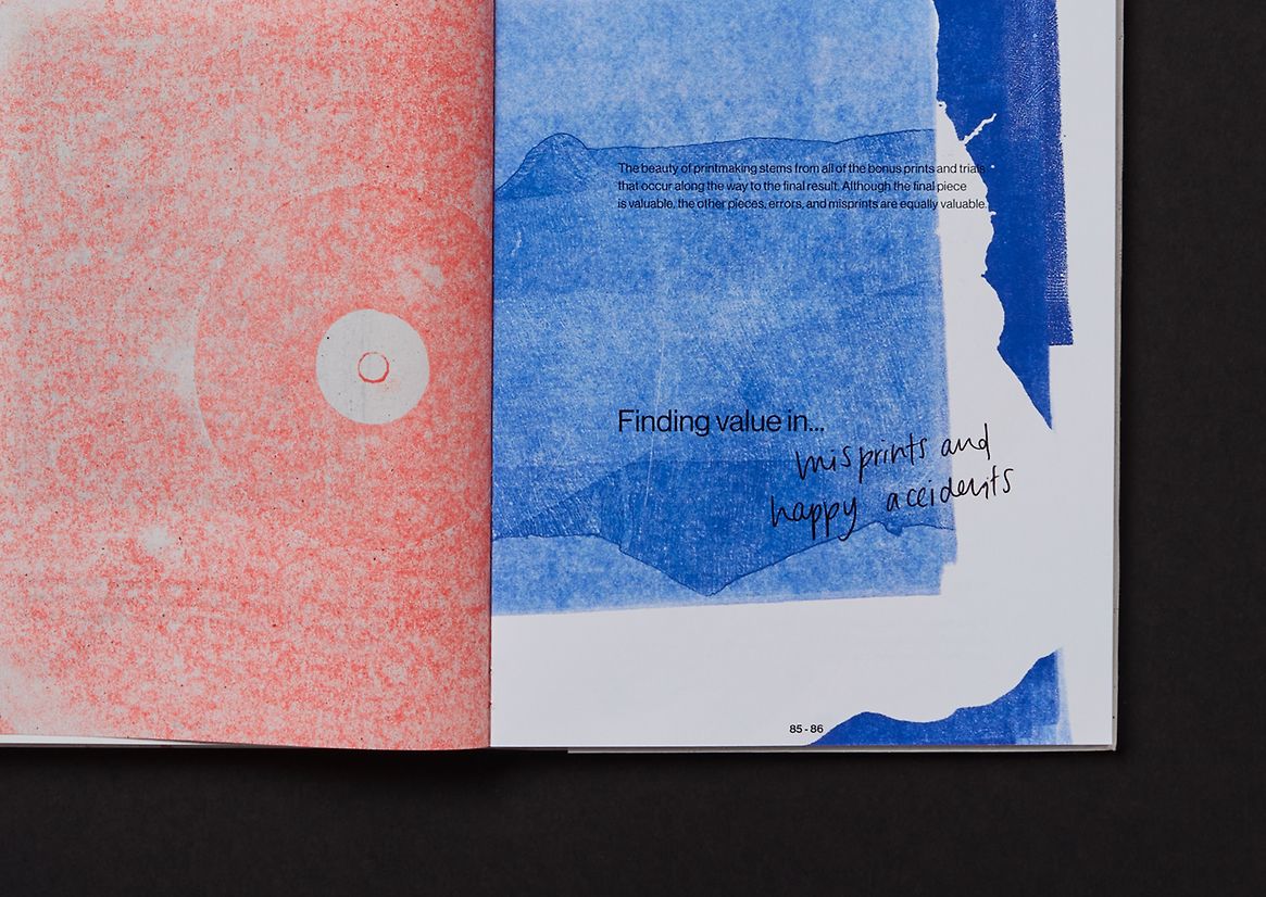 In an ever-evolving world of creativity, the pursuit of perfection often overshadows innovation and hinders progression for many artists and designers. In doing so, it instils a sense of self-doubt, discourages risk-taking, and often results in creative block. The creative process on the other hand, thrives on embracing imperfection and authenticity, and is imperative to confronting these challenges. Breakthroughs often emerge from trials, mistakes, and unexpected outcomes. However, allowing oneself to make mistakes is crucial, and this can be achieved through experimentation. The research functions as an autoethnographic study that employs heuristic methods to explore experimental printmaking as a mode of self-reflection. This process is achieved through experimentation with materials and process, reflection on action, and documentation (reproduction). Embracing Imperfections, through its physicality and methodological concept, utilises this inquiry to challenge this pervasive culture of perfectionism and ignite a renewed sense of creative freedom. It explores how experimental printmaking processes can foster an experience that challenges perfection and creates an embodied sense of flow. Embracing Imperfections offers a tactile representation of its designer’s creative process, printed on the work that embodies experimentation, guiding the reader through the influences that shape the making of the publication. As the experiments unfold, they reveal the fundamental connections between the imperfections of the creative process and the liberation from perfection. Various printmaking techniques were experimented with, like mono print, screen print, cyanotype, linocut, and risograph, as well as binding, digital printing, photographs, and scans, each enhancing both the tactile and visual aspects of the project. As a part of this exploration, the project considers the concept of publication as an artistic archive, shedding light on how tactile prints are reproduced and the fluctuating perception of value as a result. Presented in a hand-craft publication, this practice-led inquiry not only provides a narrative of personal discovery, but it also extends an intriguing invitation to others, challenging them to look inward, celebrate flaws, explore new approaches and be inspired to liberate perfection in their own creative practice. It aims to spark meaningful conversations about the nature of creativity and the importance of authenticity in artistic expression. Through its exploration of experimental printmaking processes and its tactile representation of the creative journey, this project offers a unique perspective that invites artists and designers to rethink their approach to perfectionism and find new inspiration in embracing imperfections.