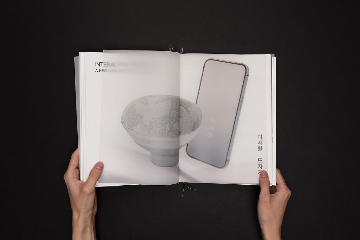 The design system for the publication draws inspiration directly from the philosophies and aesthetics of traditional Korean ceramics. For example, Baekja ceramics, known for their pure white porcelain is reflected into the design system by the use of negative space. This creates a sense of calmness, openness and simplicity that echoes the quiet elegance of the ceramics themselves. Meanwhile, the rich textures and deep tones of black clay ceramics influenced the use of contrast and material choices within the design, reflecting ideas of balance and duality.