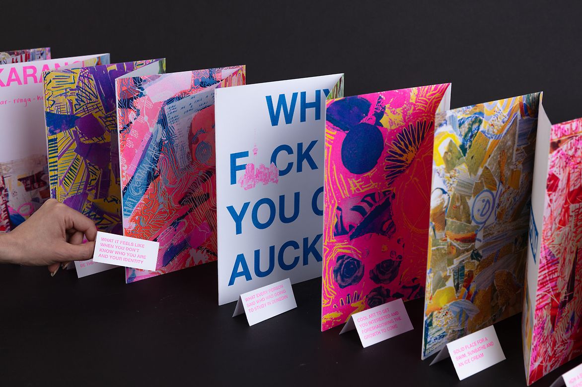 For Future Jaffas is a risograph-printed publication and concertina designed to support students transitioning into university life in Tāmaki Makaurau Auckland. As Aotearoa New Zealand’s largest city, Auckland can feel overwhelming and isolating—particularly for students arriving from smaller towns or different cultural contexts. This project responds to that emotional and social dislocation by offering a tangible, peer-informed guide created by someone who has navigated the same path.