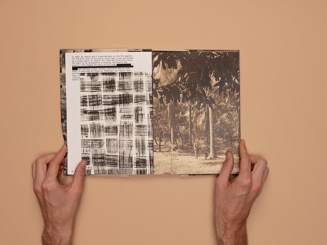 The artefact is a visually constructed publication that employs a contemporary approach to conventional Filipino design, framing Indigenous practices through Western approaches to design. This approach to design contributes to the development of new, contextually relevant methods of documenting and framing Indigenous practices. Processes including screen printing, monoprinting, typography, and photography were used to facilitate a culturally rich and timeless publication that resonates with all viewers. This project is a homage to the traditions of the indigenous Kapampangans and the hands that have raised me. It contributes to a deeper understanding of traditional Filipino weaving practices and its importance in fostering Filipino Identity.
