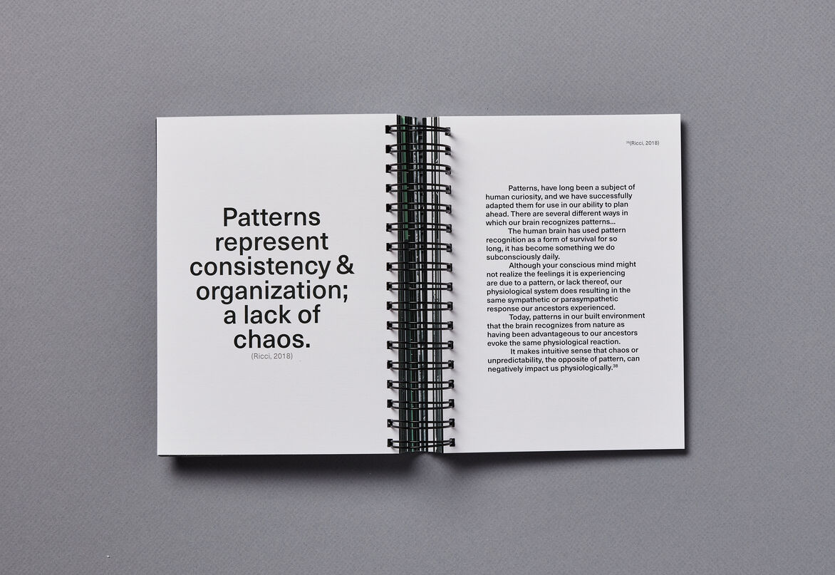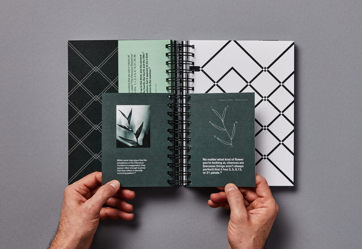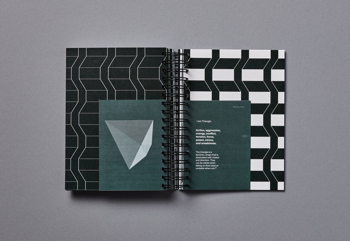 The publications uses photography to capture subtle characteristics of form found in the manmade and natural environment of Tāmaki Makaurau. Photographs were carefully manipulated into geometric patterns, which aim to highlight the natural or unnatural systems in the forms of our surroundings. Some of the patterns are extracted and enlarged to showcase strong yet simple geometrics and highlight their commonality in our world — if we look hard enough to see them.