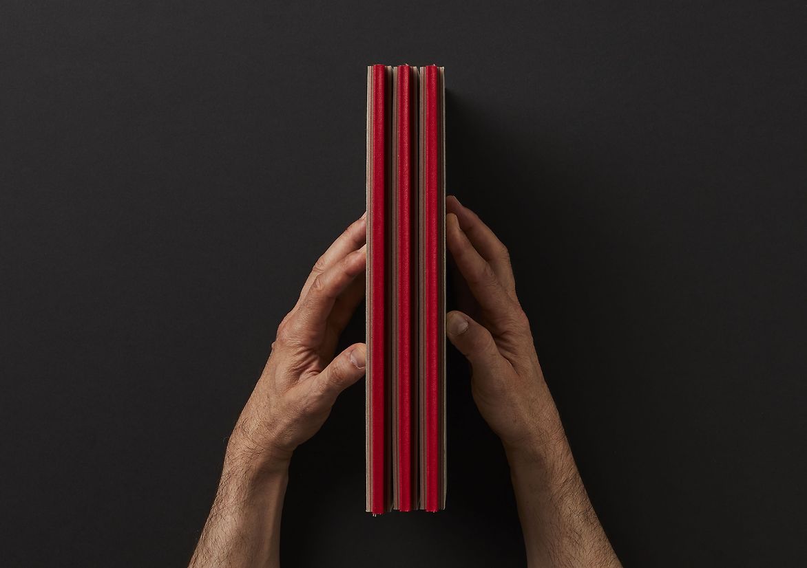 The publication utilises various paper stocks to create clear visual and textural as well as textual separation between sections. The hardcover of this book employs relief printing with transparent ink on recycled board, achieving a subtle deboss effect that balances legibility and texture.