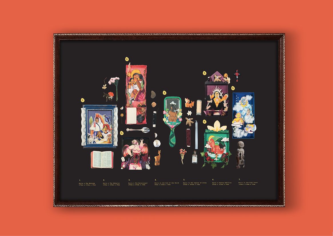 Through a series of seven assemblages, Maria traverses through sea, land, and sky, bringing the bold landscapes and bright, colourful creatures of Filipino mythology into the intensely sacred space of devotional shrines and 3D assemblages. By framing indigenous folklore with Western Literary Devices, the project hopes to create a timeless, familiar narrative that all audiences can enjoy—with a native twist.