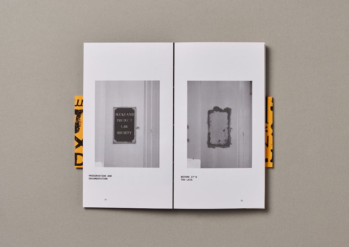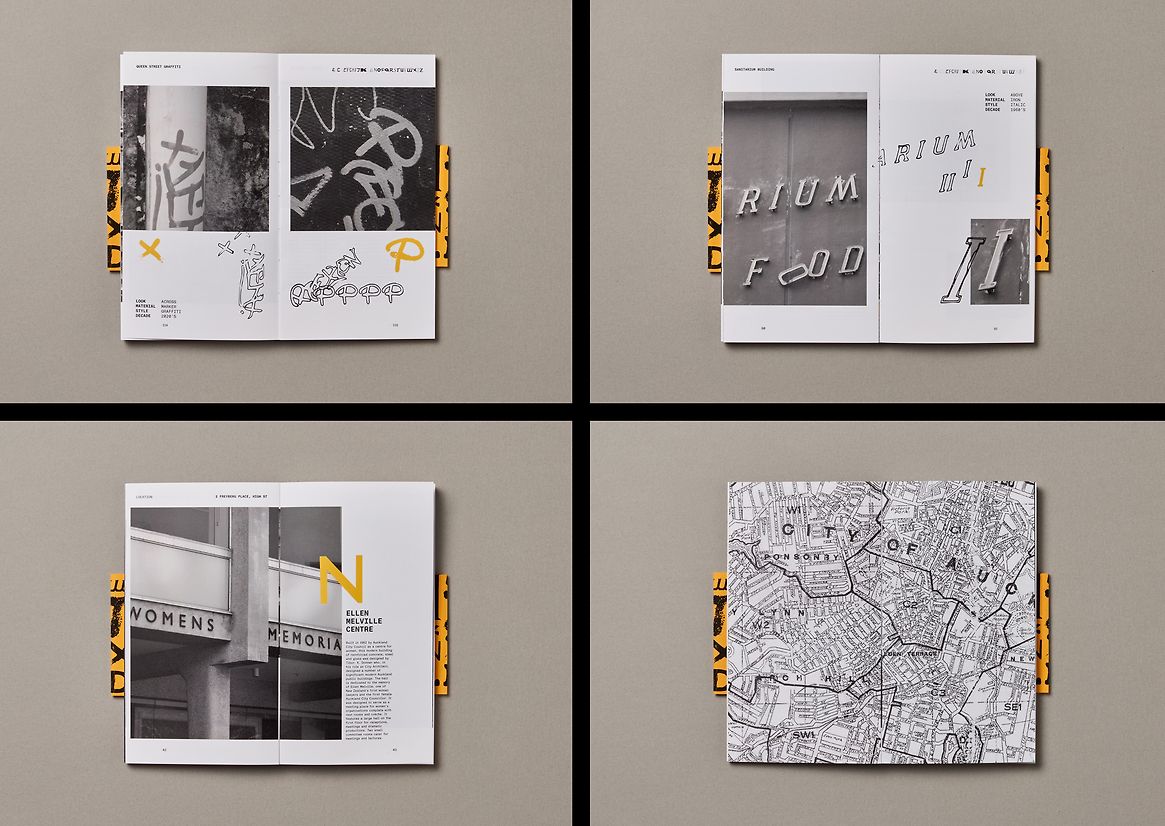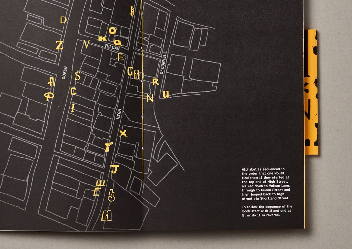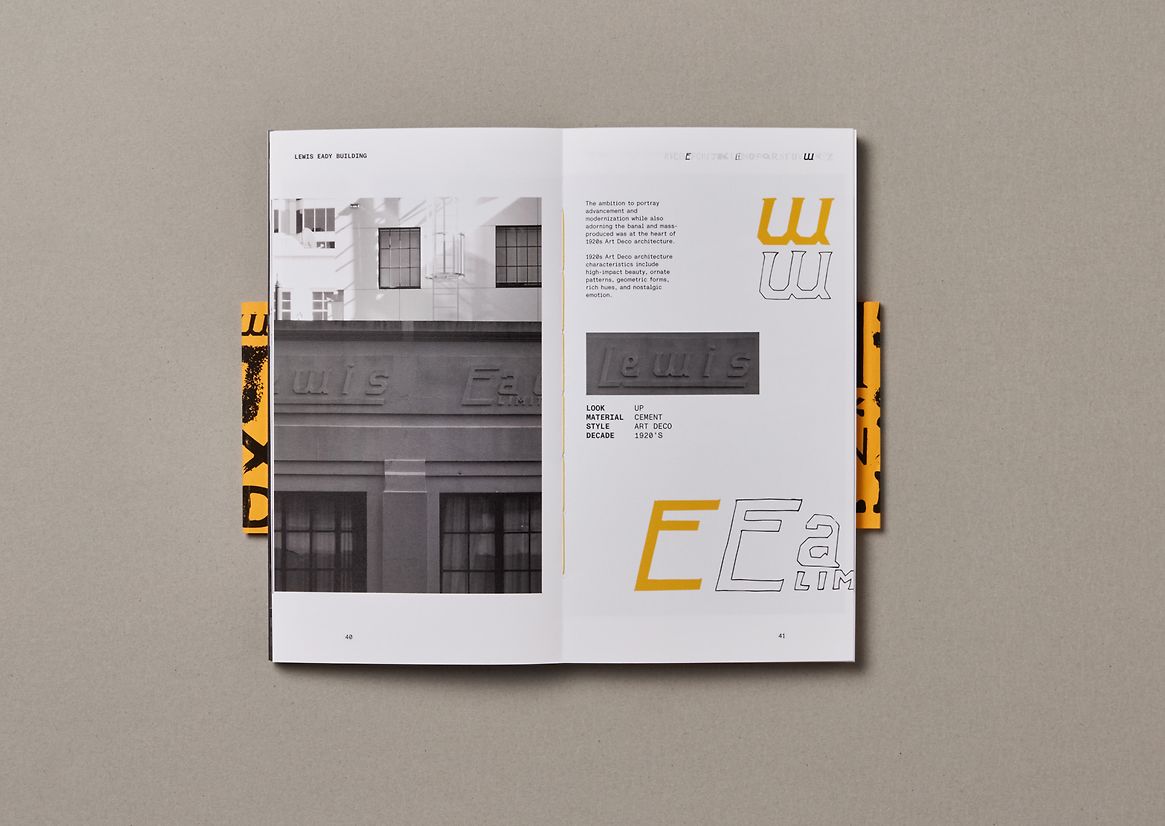 Every design decision was made to ensure it aided or represented the storytelling and influence of the area. The viewer also gets the opportunity to physically involve themselves in the journey. As the viewer follows the progression of the book, the information reveals as if they were making the walk themselves. This means that the viewer could physically follow the map and see these letterforms in real life. By placing the viewer physically within the context of the work, they can educate themselves, in turn creating awareness around the protection and preservation of our local design/architectural history.