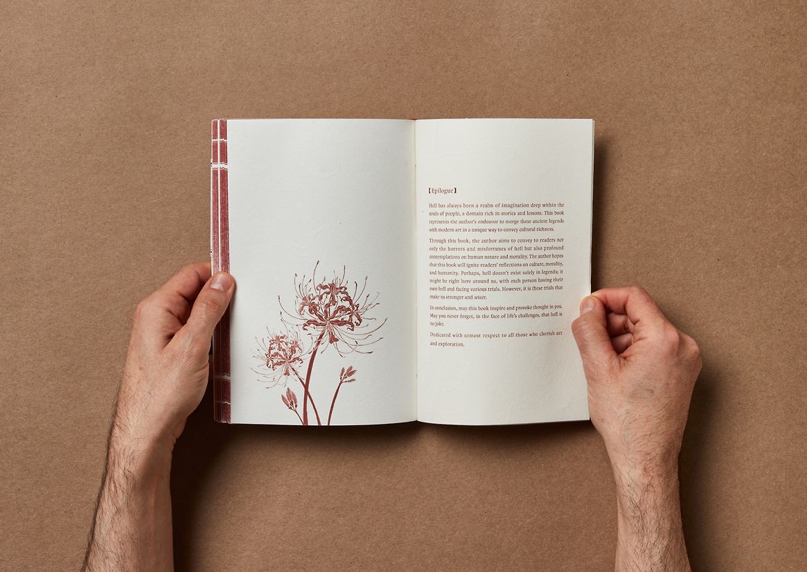 The primary design outcomes of this project include two illustrated books and their packaging. Through the integration of illustrations, typography, paper selection, and traditional binding techniques, the project conveys the fusion of traditional Chinese concepts of hell with art, presenting a cultural and visual experience. Innovative elements such as bilingual content, colour contrast, and mask motifs highlight the project's uniqueness and address the needs of diverse cultural and linguistic audiences, infusing new vitality and meaning into the dissemination and preservation of traditional culture.