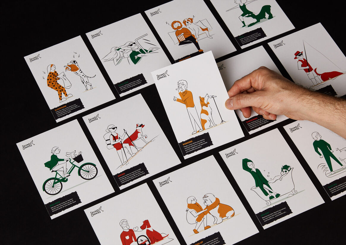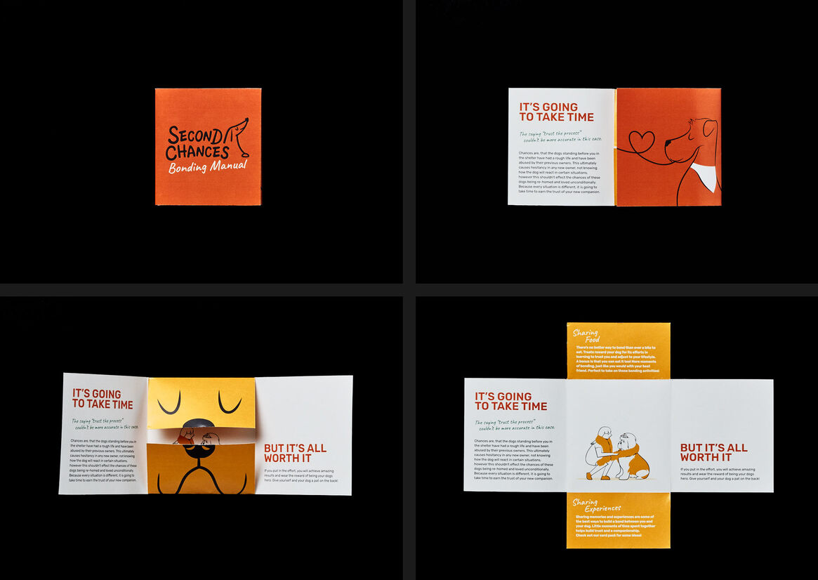 The project was made to feel warm and inviting, enhanced by an appropriate colour palette and a combination of typographic and illustrative choices. The illustrations playfully visualise the dog at the same level of a friend or family member and were illustrated alike through their physical attributes, depicting their strong bond – like owner like dog.