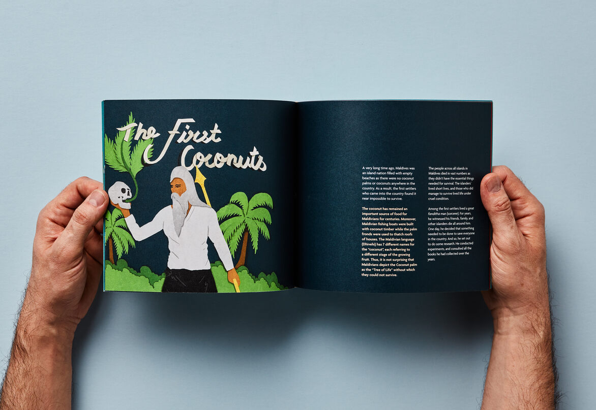 The project consists of three posters that display characters from three different folklore, along with a book that provides more information about these stories and how they are significant to the culture and history of Maldives. The first explores the importance of coconut palms through the story of a wise sorcerer who grew the palm trees to provide sustenance for the islanders. The second outlines the significance of mysticism and superstition within Maldivian history through the story of ‘Dhonkamana’, the demon lady. The final story is about the sea monster, ‘Rannamaari’, and how it symbolizes the importance of seafaring in the country.