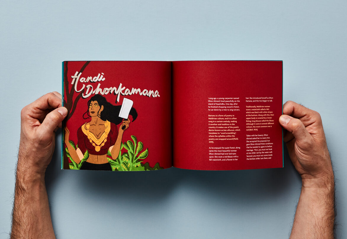 Stories From Paradise is an exploration of Maldivian history and culture through its mythology and folklore. Storytelling has always been a significant part of Maldivian history, making it suitable focal point for this project. There are little to no records of Maldivian folklore as they were passed down verbally through generations. Hence, this project is about capturing some of the stories that have been lost over the years.