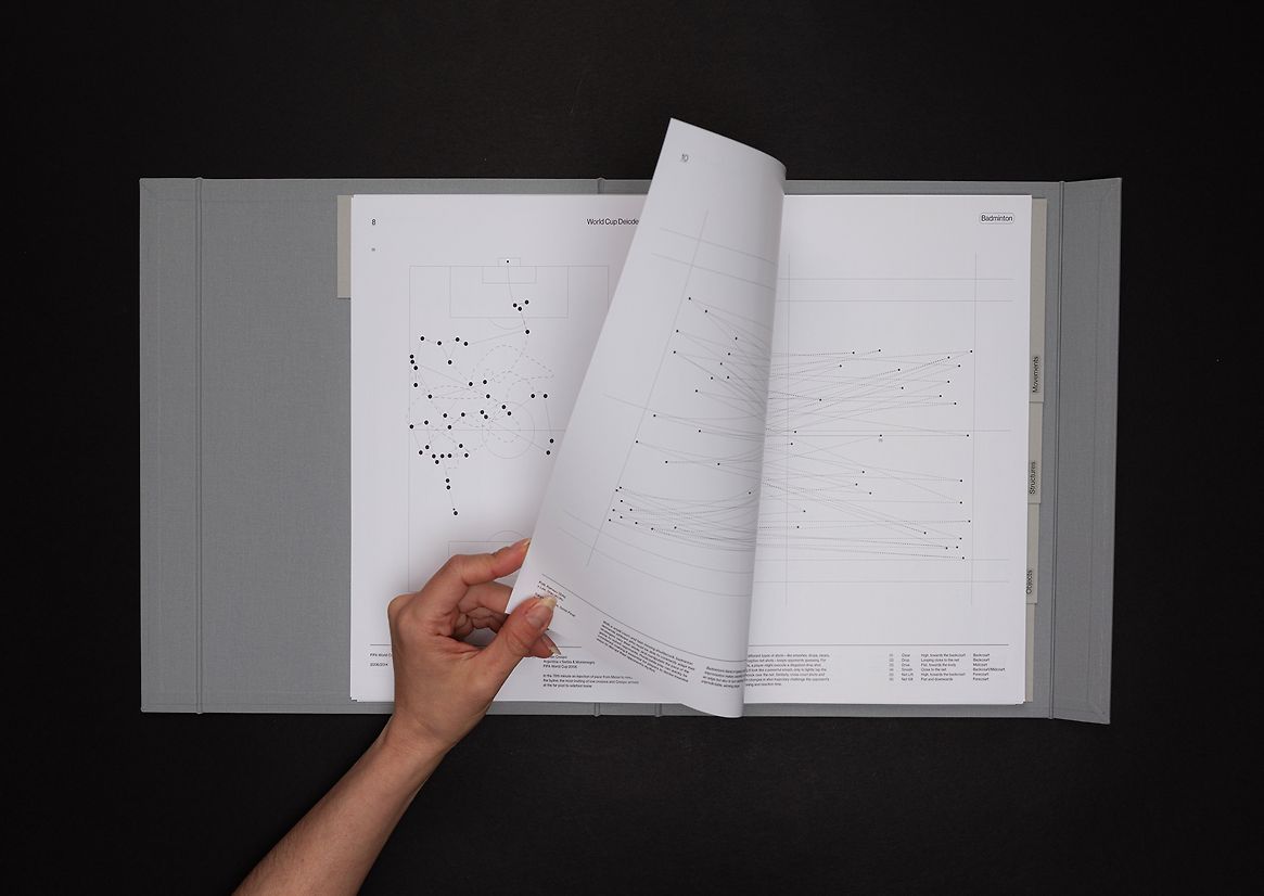 The project was driven by a central question: How can the visualisation of movement and spatial data provide insight into the creativity of sport? Drawing on personal experience and practice-led research, I explored this idea through the development of a categorised compendium that maps creativity across 15 different sports. The content is organised into four themes: Plays, Movements, Structures, and Objects, allowing readers to encounter creativity in both the spontaneous and the engineered.