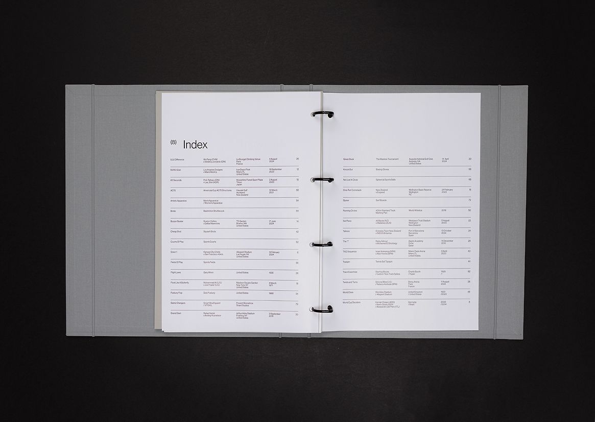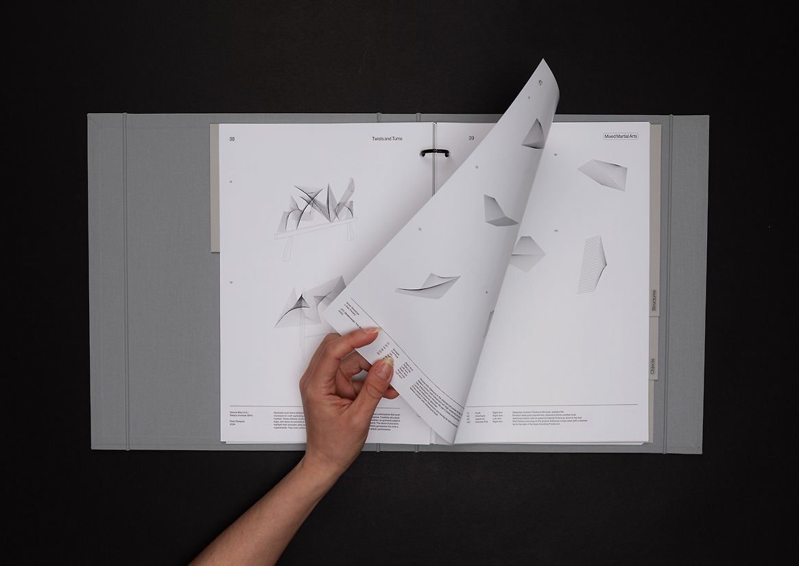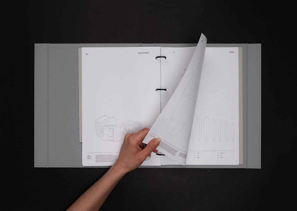 The final output is a ring-bound, alphabetically organised publication housed in a blind-embossed slipcase. It borrows the tactile and navigational qualities of a technical manual, while presenting content with the visual clarity and narrative flow of a design object. Designed for discovery, the compendium invites users to engage with sport as they would with a field guide—curiously and on their own terms.