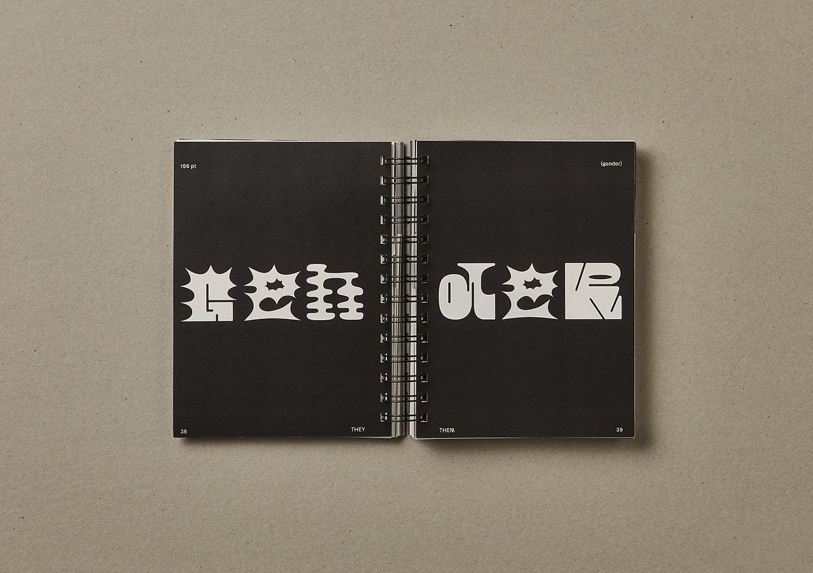 How can typography be used to express nonbinary gender identity? This project takes typography and gender - two things typically divided by binary categories, two different modes of expression - and ventures outside of their confined constructs. Its intention is to explore the experience of gender beyond the binary, allowing those who exist in this space to see themselves reflected in a typeface.