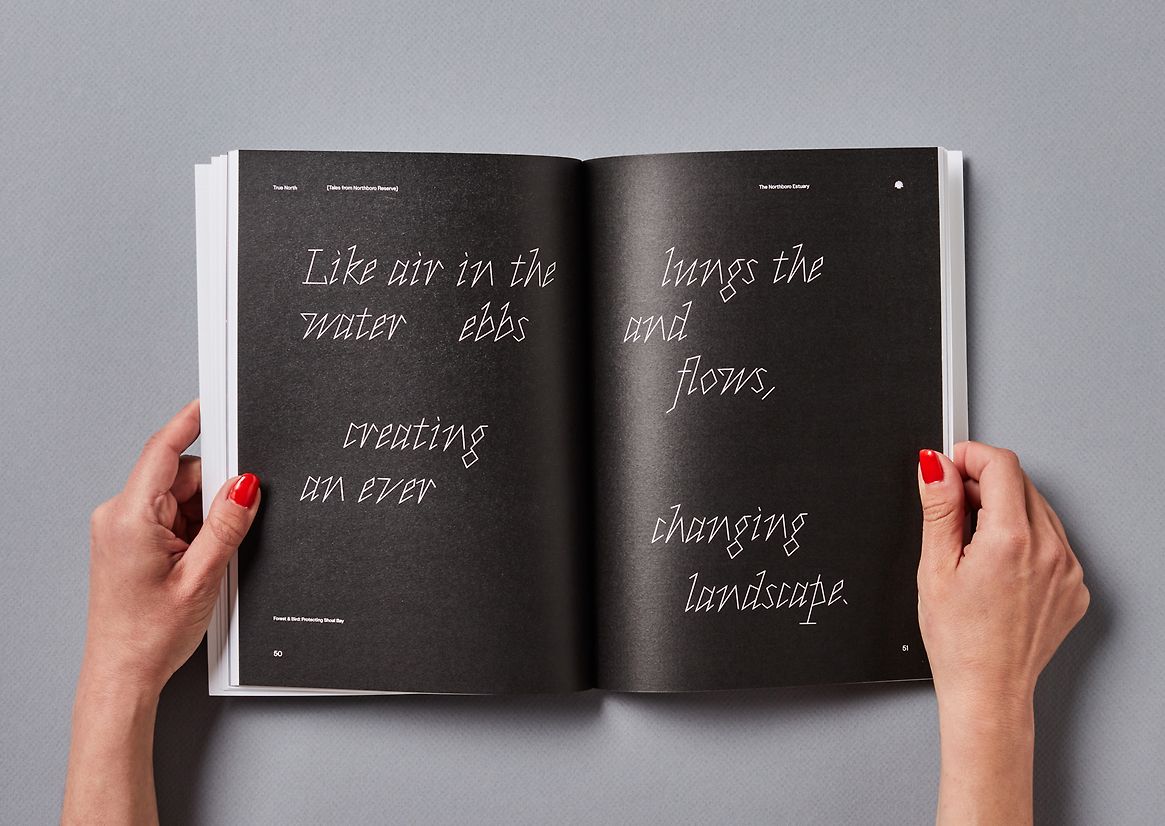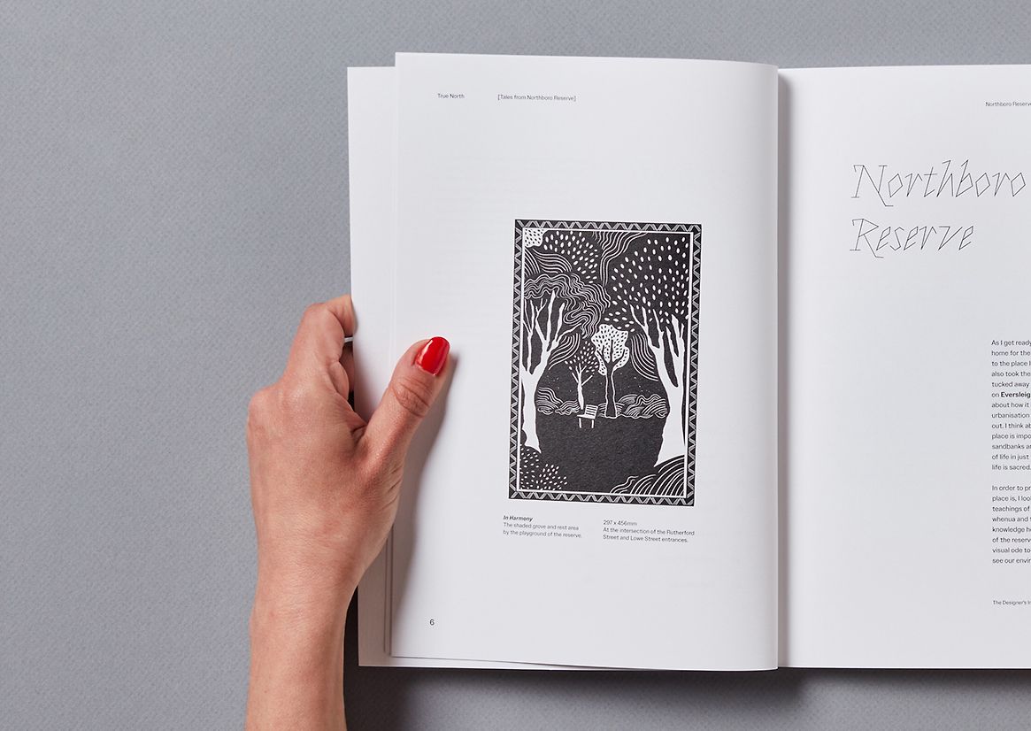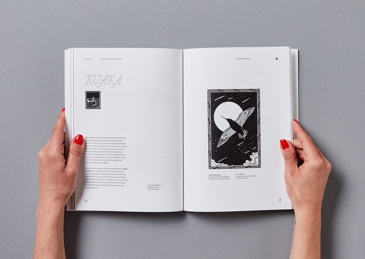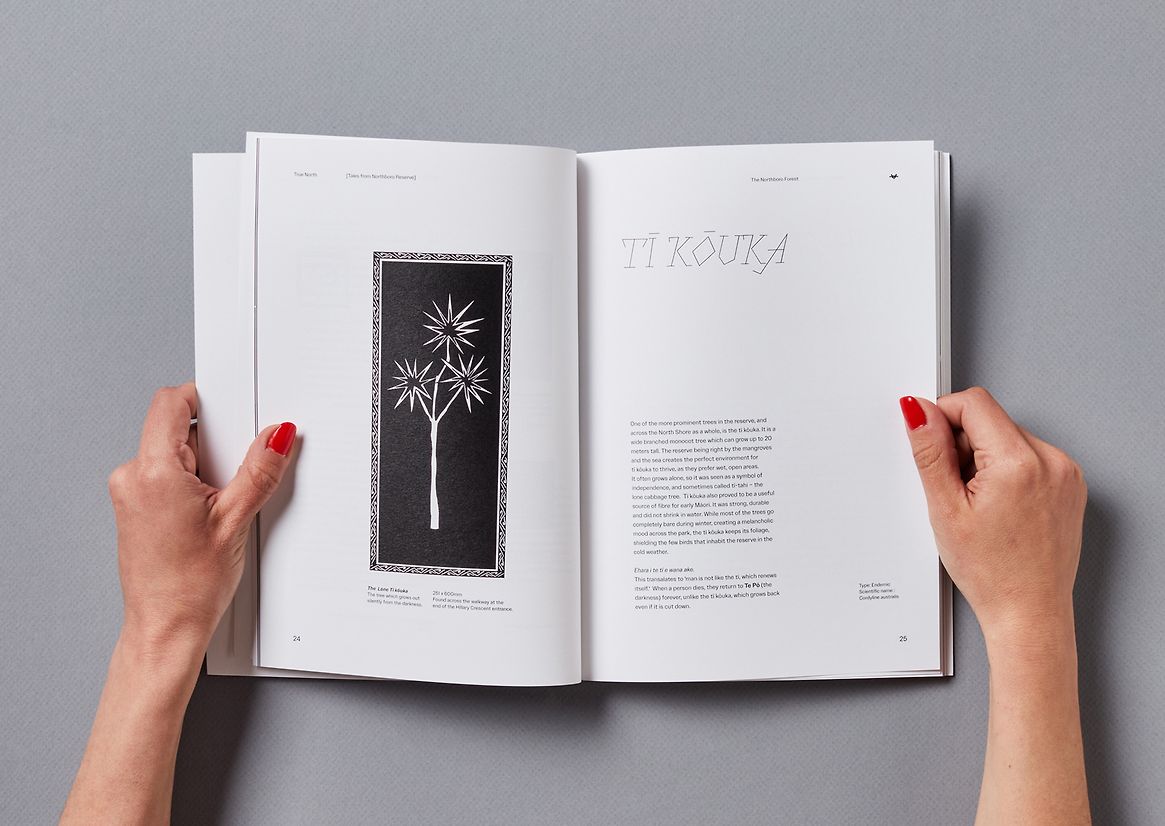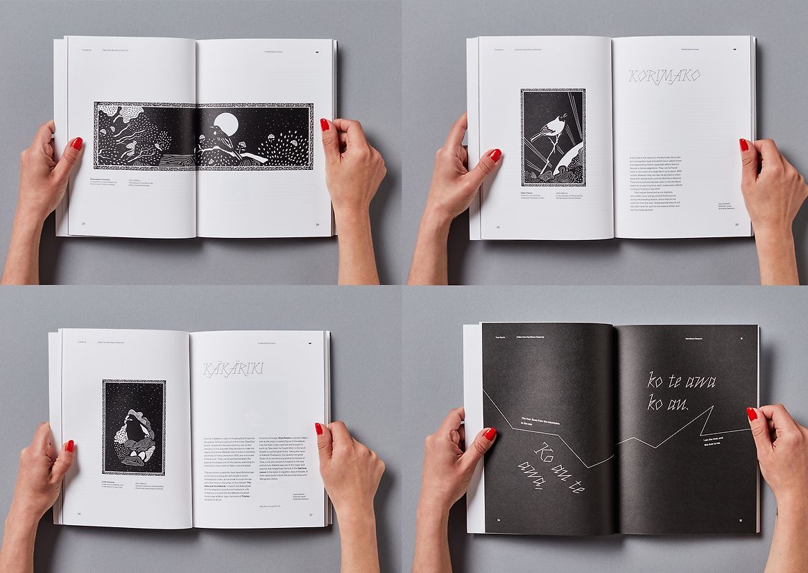 By placing Matauranga Maori at the forefront of the project’s place-based investigation, ‘Te Ao Marama’ serves as a conceptual framework for illustrating the reserve: exploring everything in nature as part of a cosmic family. In particular, the creation stories that emphasize the cycle of light (Te Ao) and darkness (Te Pō), white and black, which influenced the monochromatic visual system and celestial motifs of the publication.