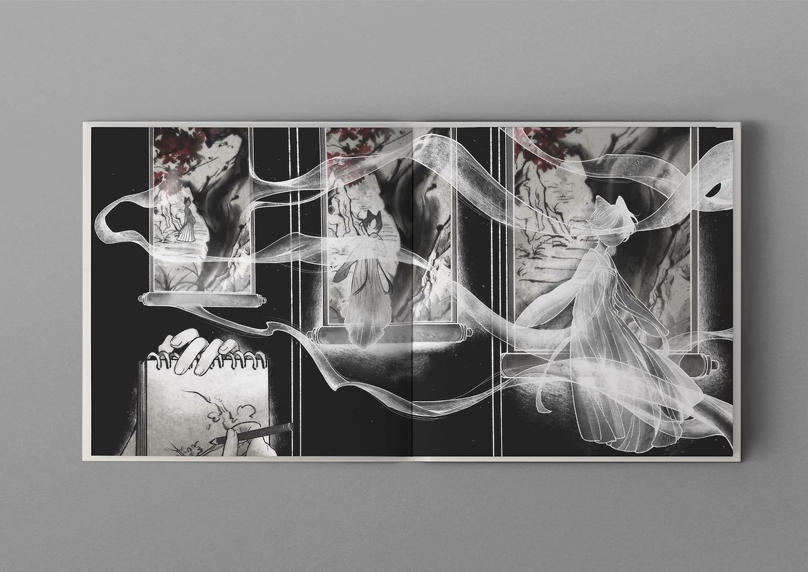 Ghost Talk is a picture book that utilises a Chinese Zhiguai style of narration as means to discuss Chinese parental expectations. The story tells of a fantastical journey of reminiscence between a young girl and ghosts in a spiritually connected dream world, prompting her to reconsider the reasons behind her fading pursuit of self-wishes.