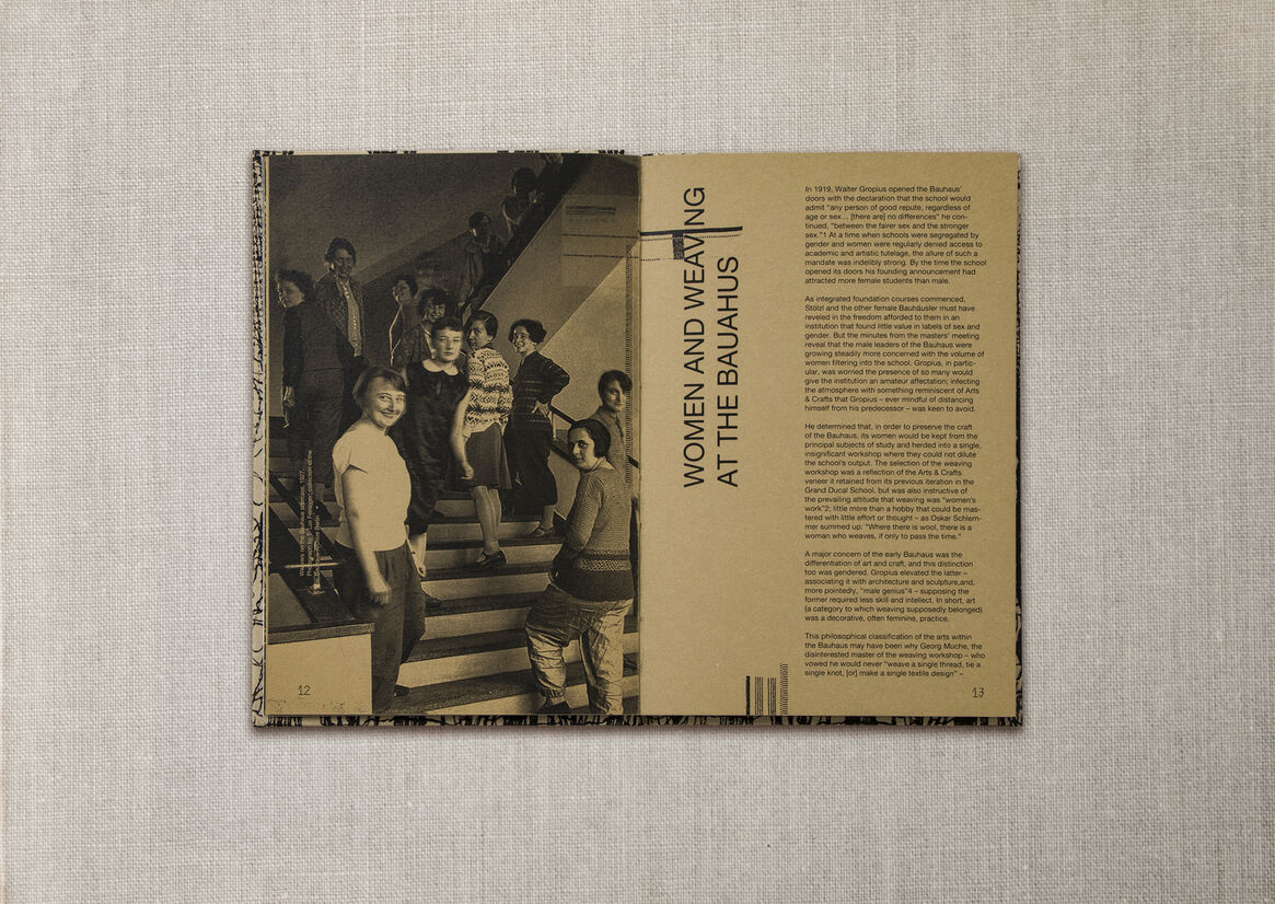Sparked by an interest in textile design, “Tracing Threads” highlights the work of female weavers of the Bauhaus who have been overlooked by art history. Pioneers like, Gunta Stölzl, Anni Albers, and Marli Ehrman whose work have triggered a deeper conversation on the contemporary textile art scene, and continue to inspire contemporary textile artists. The publication aims to capture the essence of what these women were doing at The Bauhaus School in Weimar while revolutionising textile design in the process.