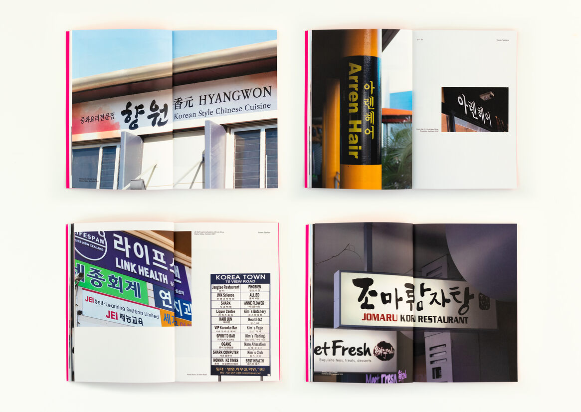 To support the typeface design, I have conducted photographic research on Korean typefaces used in our contemporary New Zealand society. The photographic research surveys different Korean locations around Auckland, capturing the signages of the venues; the abstract visual representations of each locale that distinguishes them from the others.