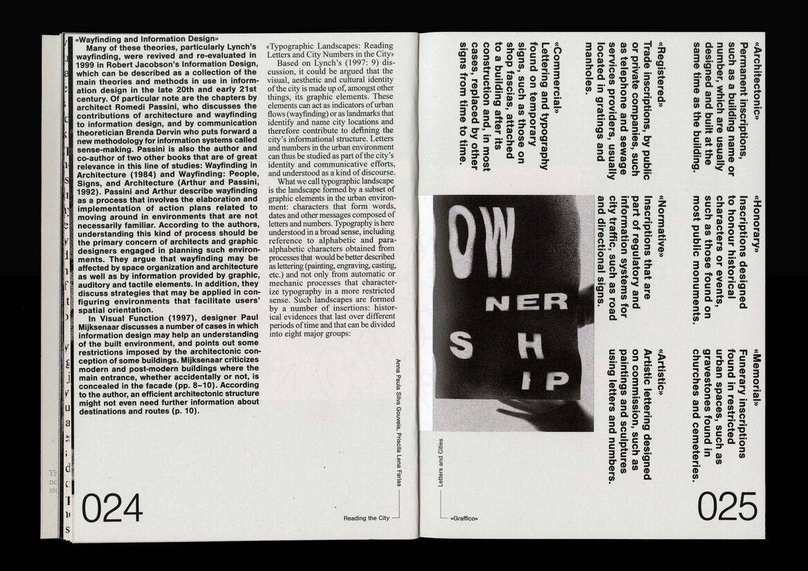 The brief included written articles in two styles; one author adopting a traditional approach and the other more progressive, reflecting on typography as a method to navigate city landscapes.
