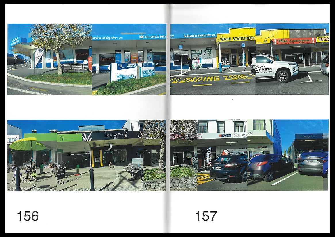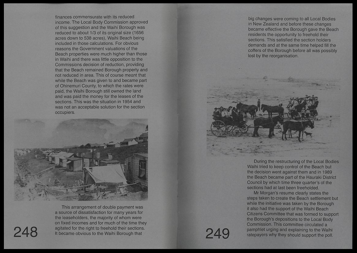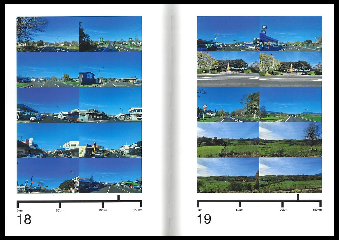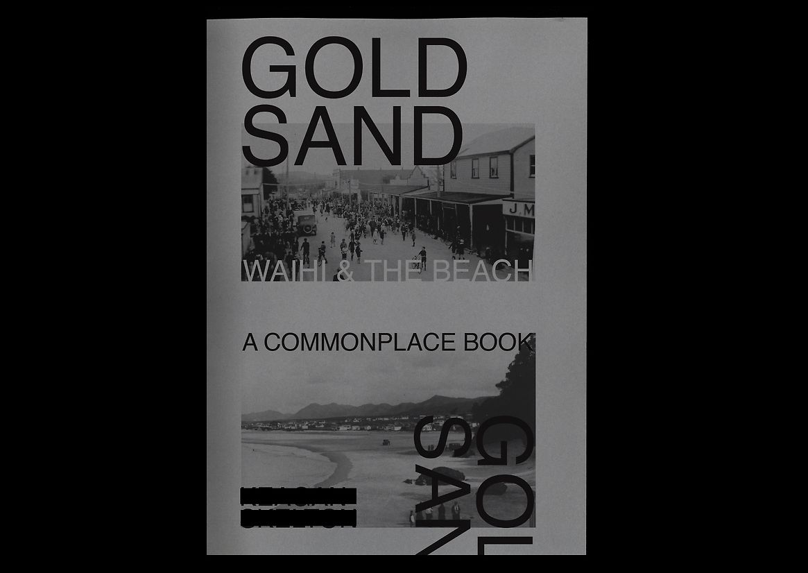 More content: The history of gold mining in the area was of course always going to be a focus, and hence the 3-D cut hole indicating the topographic profile of the Martha Mine that dominates Waihi township; I interviewed my mum for the book, because she has been going down to Waihi and the beach for a long time and has seen them change dramatically; the image sequence pages of Seddon Street shops are a somewhat tongue-in-cheek reference to Robert Venturi, Denise Scott Brown and Steven Izenour's book "Learning from Las Vegas".