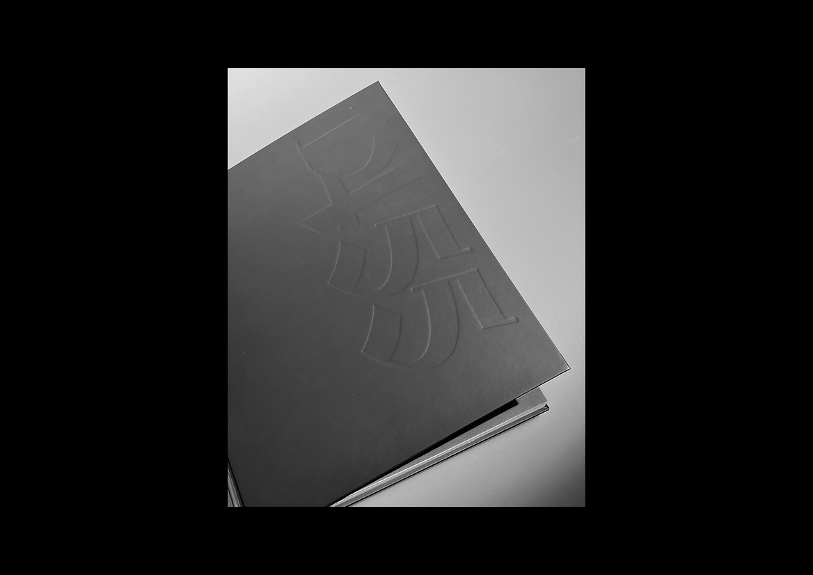 A traditional book design approach has been realised in a contemporary manner with a matte hard cover, french folds and perfect binding. The front of the cover is abstracted to a singular blackletter feature: 1455 debossed, to reference Gutenberg's Moveable Metal Casting Type molds. The back features 2022, printed in the same contemporary Swiss sans-serif typeface used throughout the publication. The cover in its entirety is an interpretation of the 42-Line Bible's influence on present day print technology.