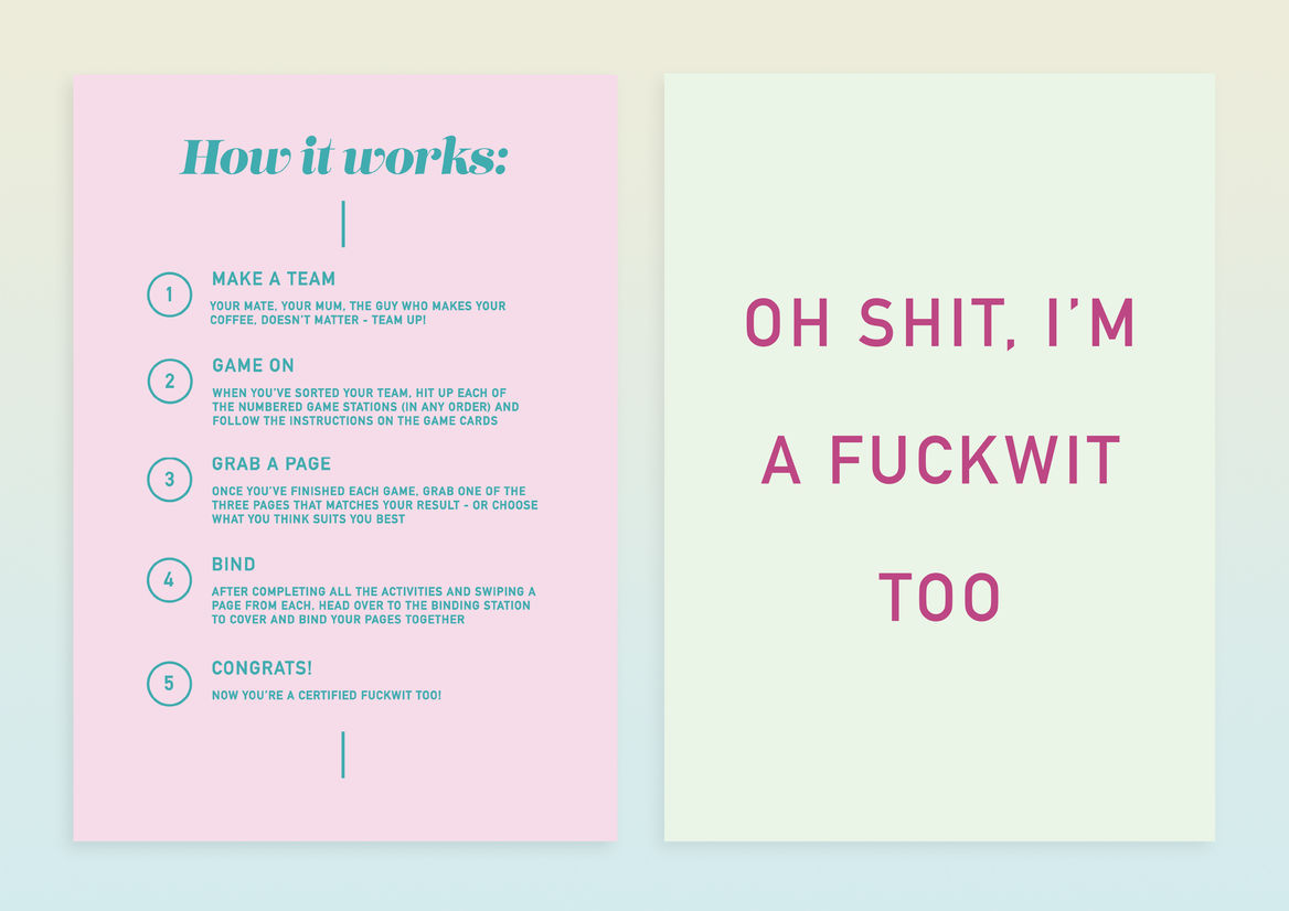 Graphic Business Communication Colour Award Graphics Design Communication Design Craft Editorial and Books Environmental Graphics Large Brand Identity Packaging Self Promotion Small Brand Identity Student & Academic Graphics Animation Digital Film Graphic Moving Image (archived 2025) Product Social Good Award Spatial Toitanga Value of Design Award User Experience Award (archived 2019) All categories Business Communication Colour Award Graphics Design Communication Design Craft Editorial and Books Environmental Graphics Large Brand Identity Packaging Self Promotion Small Brand Identity Student & Academic Graphics All years 2025 2024 2023 2022 2021 2020 2019 2018 2017 2016 2015 2014 2013 2012 2011 2010 Studio A-Z Nicole Streeter Oh Shit, I’m a Fuckwit Too Finalist 2018 Student & Academic Graphics Credits Tauira / Student Nicole Streeter Kaiako / Lecturer Karl Kane School Massey University College of Creative Arts