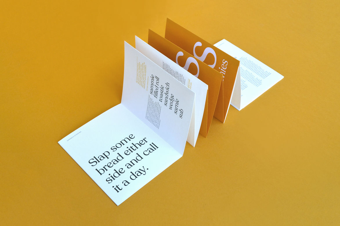 Such an accomplished piece of work with many layers that were both well thought through and well put together. The subject of the humble sandwich gets elevated to the next level with the combination of beautiful typography, considered layout, good imagery choice, clever copywriting, great finishing and the overall packaging combine for a standout piece of work.