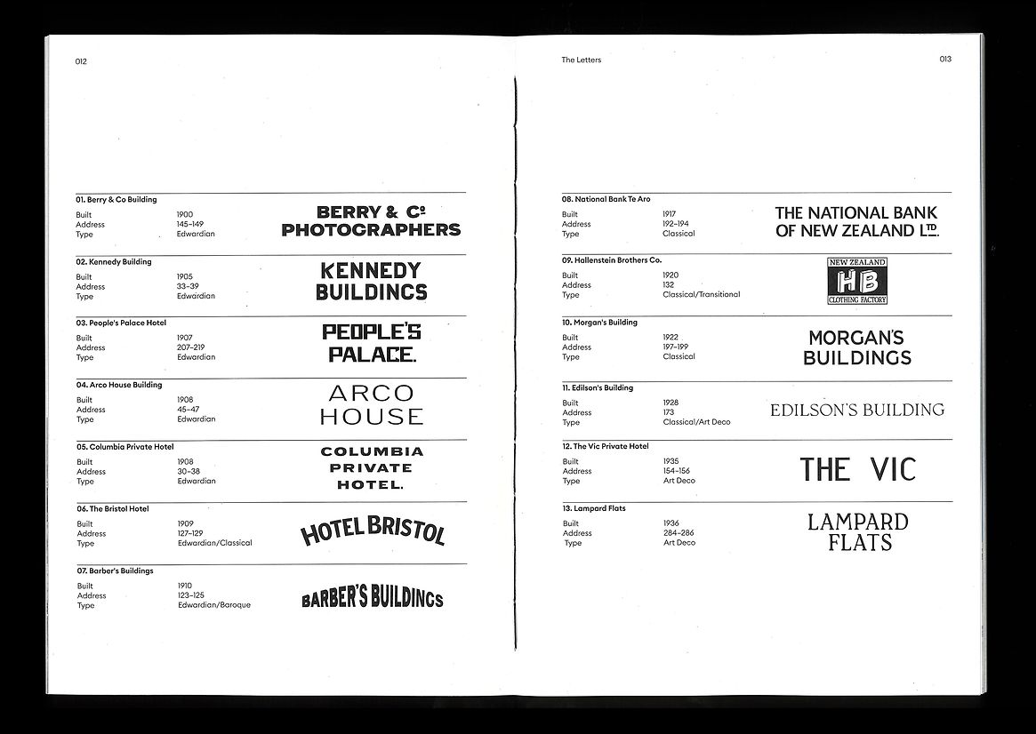 The design of 'Set in Stone' is meticulously crafted into a 220-page book that offers a comprehensive record of Cuba Street's transformation. Collaborating with an architectural photographer, the book features captivating visuals that depict the street’s evolution. Each building's lettering is documented in detail, with stories and archival materials such as historical photographs and architectural plans enhancing the narrative. The design execution focuses on creating an immersive experience, blending visual and textual elements to tell the story of Cuba Street’s changing face. The process involved tracing the letters to highlight their intricate details and historical significance, providing a visual representation that connects the audience with the past.